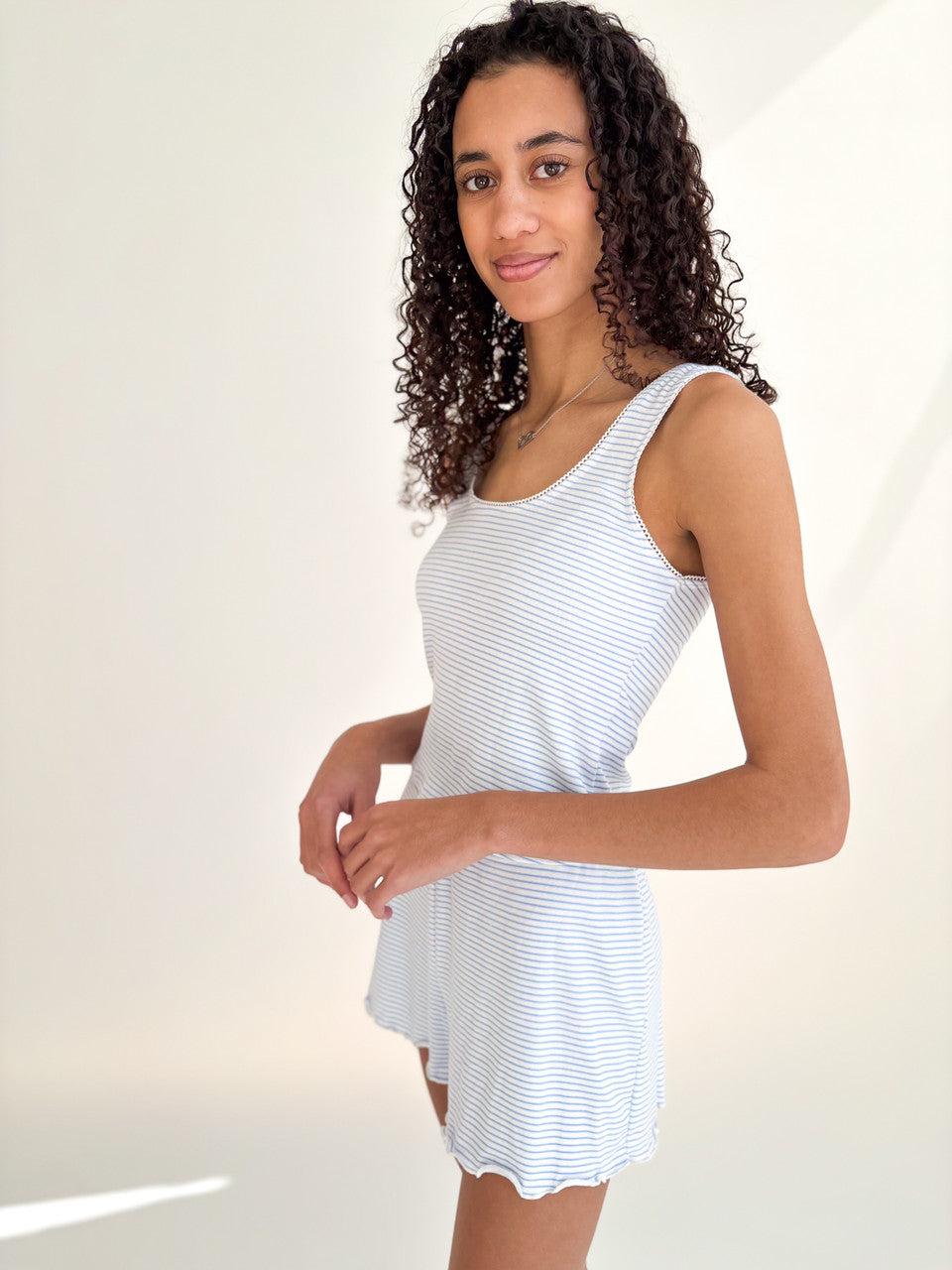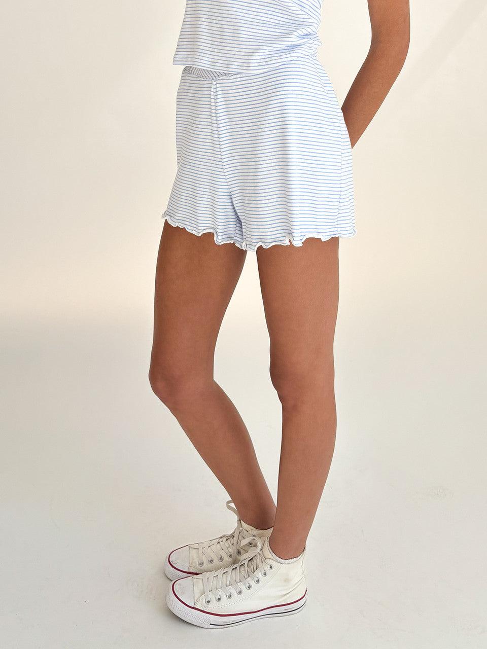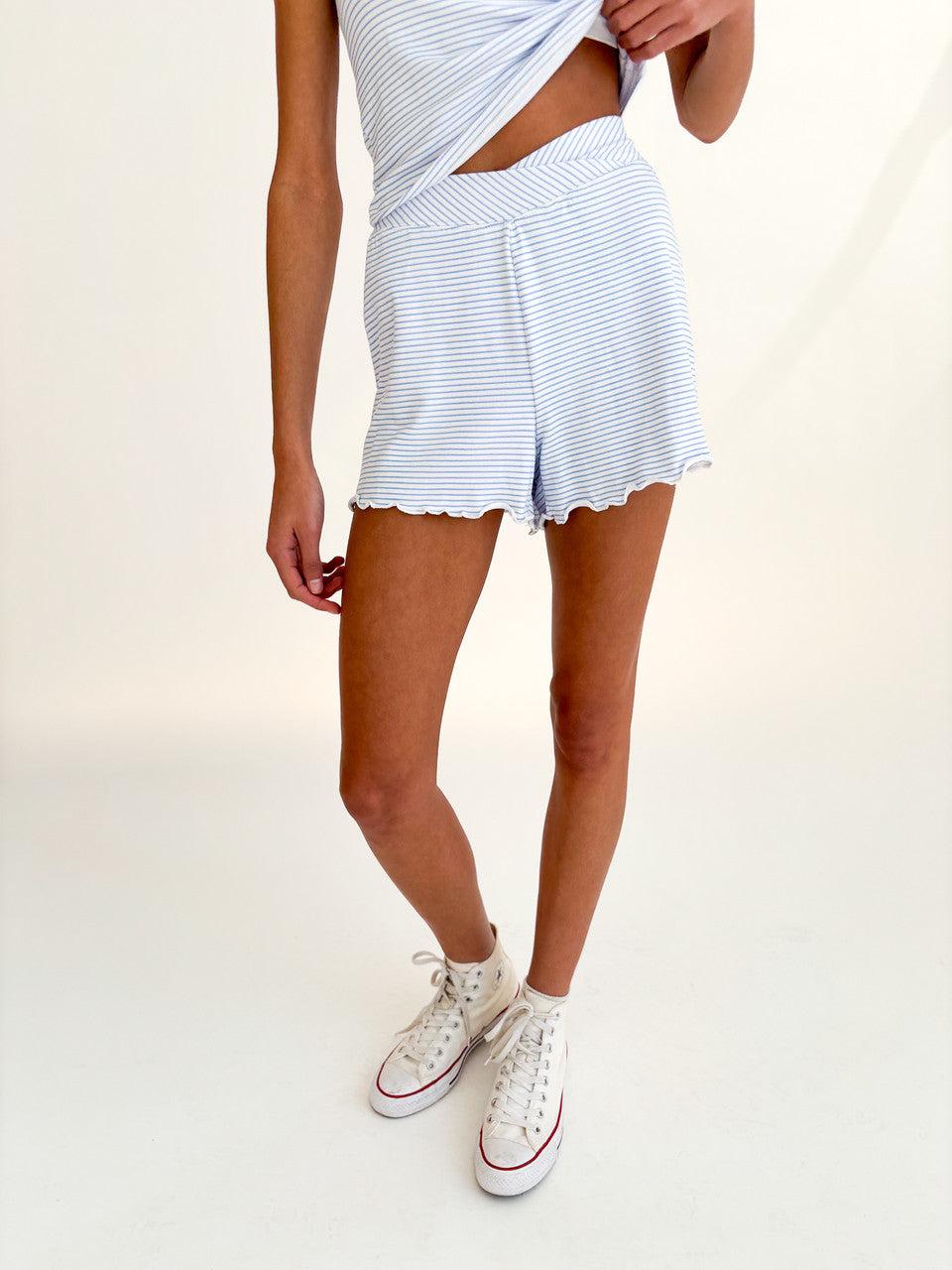 Blue Pinstripe Crossover Waist Lounge Shorts