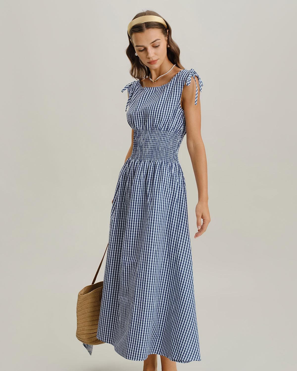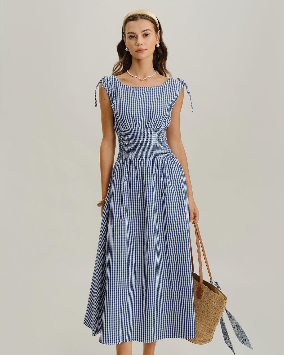 - Occasion: Daily - Style: Casual - Fabric Stretch: No Stretch - Waist: Natural Waisted - Sleeve Length: Sleeveless - Sleeve Type: Sleeveless - Pattern Type: Plaid - Embellishment: Tie, Shirred - Neckline: Boat Neck - Dress Type: Tunic - Silhouette: Ball Gown - Fabric: Polyester