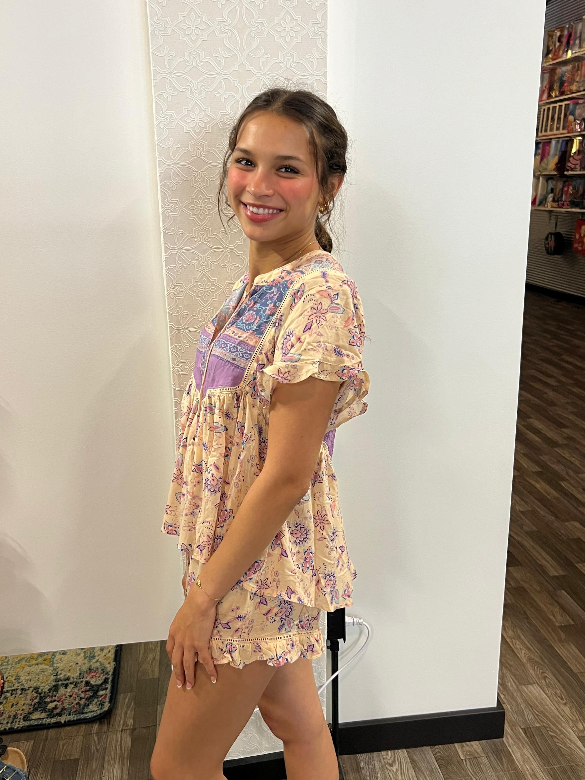 This Blue Tassel Tie Ruffle Hem Top & Short Set is a stylish and comfortable duo perfect for warm weather. The top features playful tassel ties and a ruffle hem for a flirty touch, while the matching shorts offer a relaxed fit for all-day ease. Ideal for casual outings or beach days, this set combines fashion and comfort effortlessly.