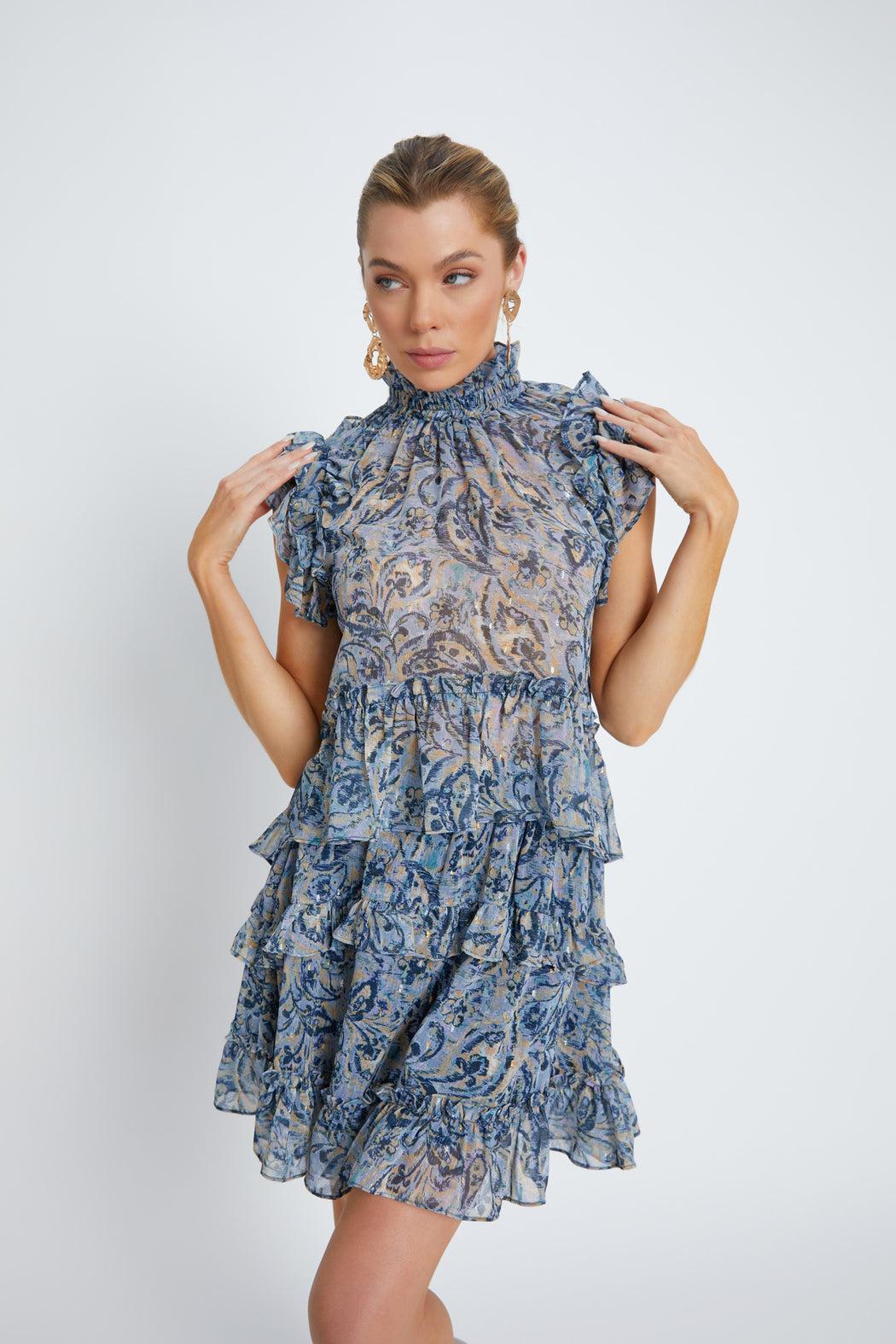 Add a touch of elegance to your wardrobe with our Blue Tempera Print Tiered Mini Skirt. This stylish skirt features a beautiful tempera print in shades of blue, perfect for any occasion. The tiered design adds a playful and feminine silhouette, while the lightweight, breathable fabric ensures comfort throughout the day. The elastic waistband provides a comfortable and secure fit, making it ideal for all-day wear. Pair it with a simple blouse or a matching top for a chic and coordinated look. Shop now to add this versatile and trendy mini skirt to your collection!