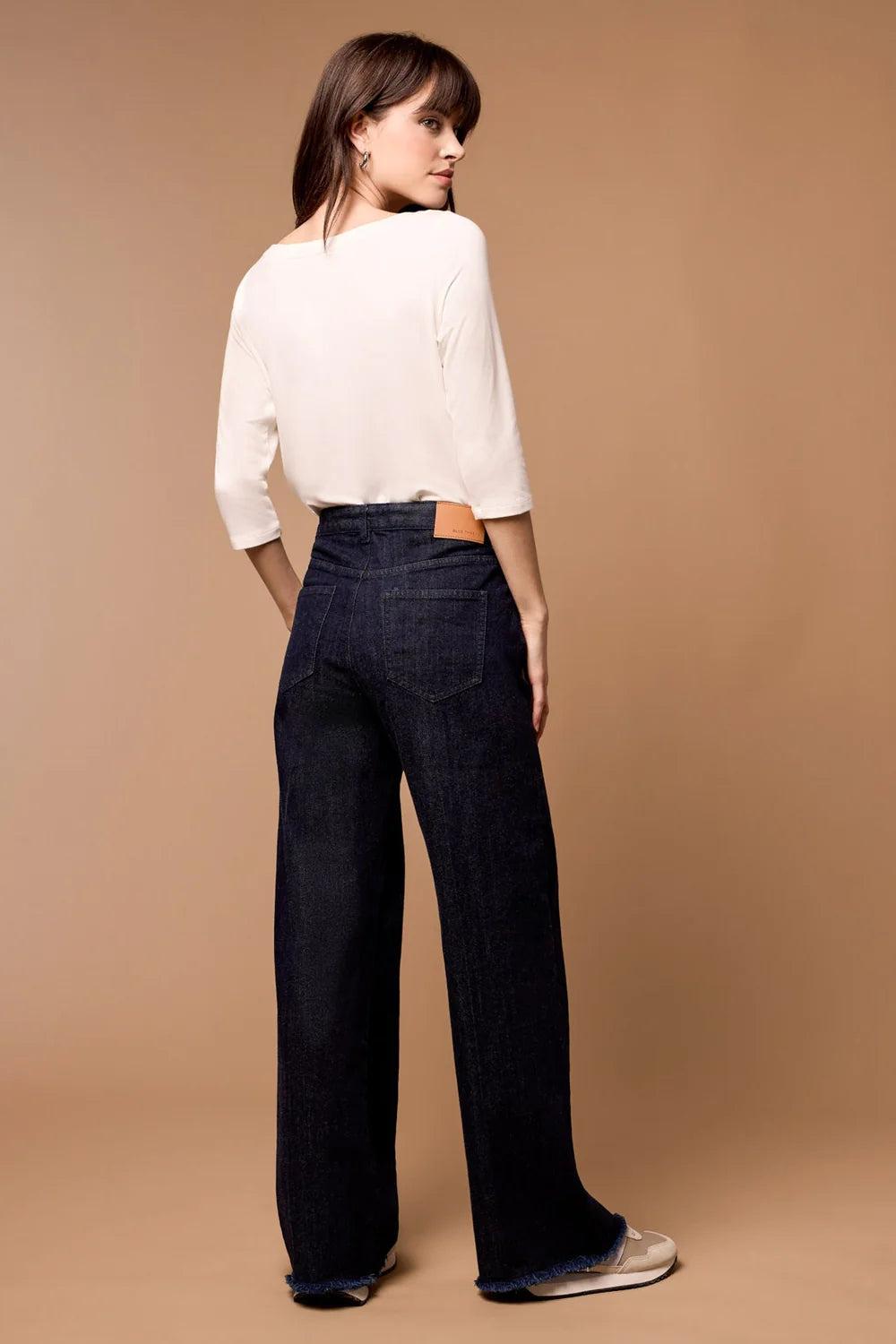 Achieve a structured look with a dose of comfort courtesy of these high rise jeans featuring a wide leg design accentuated by crisp center crease. We love the hugging upper fit, raw edge hem, 5 functional pockets, and classic wash styles.