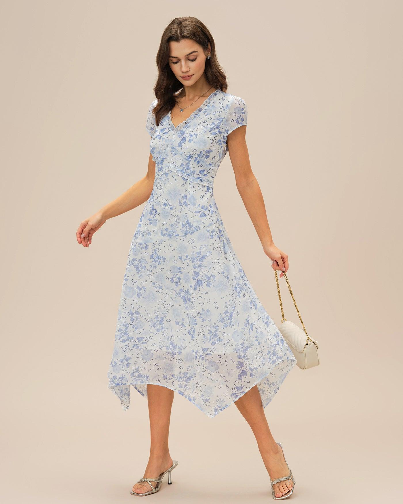- Occasion: Daily - Style: Elegant - Season: Spring, Summer - Fabric Stretch: No Stretch - Waist: Natural Waisted - Sleeve Length: Short Sleeves - Sleeve Type: Cap Sleeve - Pattern Type: Floral - Embellishment: Floral, Ruched - Neckline: V Neck - Dress Type: Sheath dress - Silhouette: A-Line - Fabric: Polyester - Lining: Polyester - Material: Chiffon - Fabric Types(Pattern Style): print