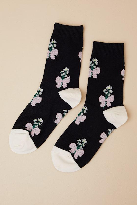 These ultra-cute, Hansel from Basel crew socks lend the perfect pop of color to any OOTD, thanks to the bow and bluebell-inspired floral design that sweeps across the stretchy cotton-blend knit. White detailing at the toe and heel. Style with your favorite sneakers or loafers for an eye-catching finish.