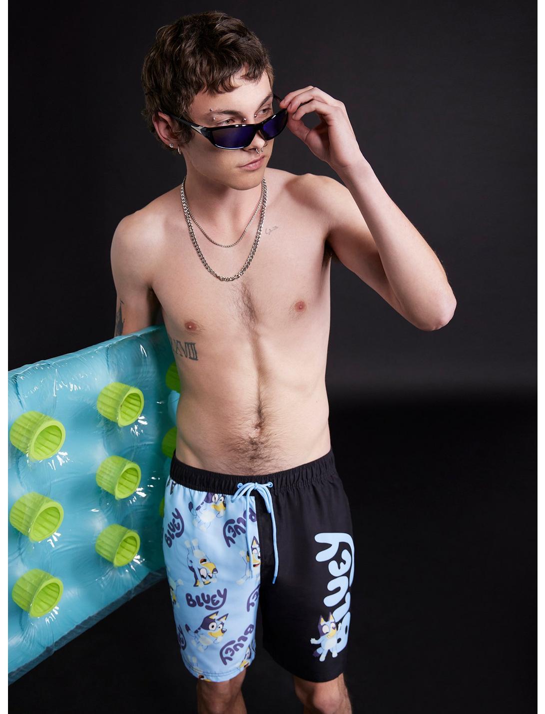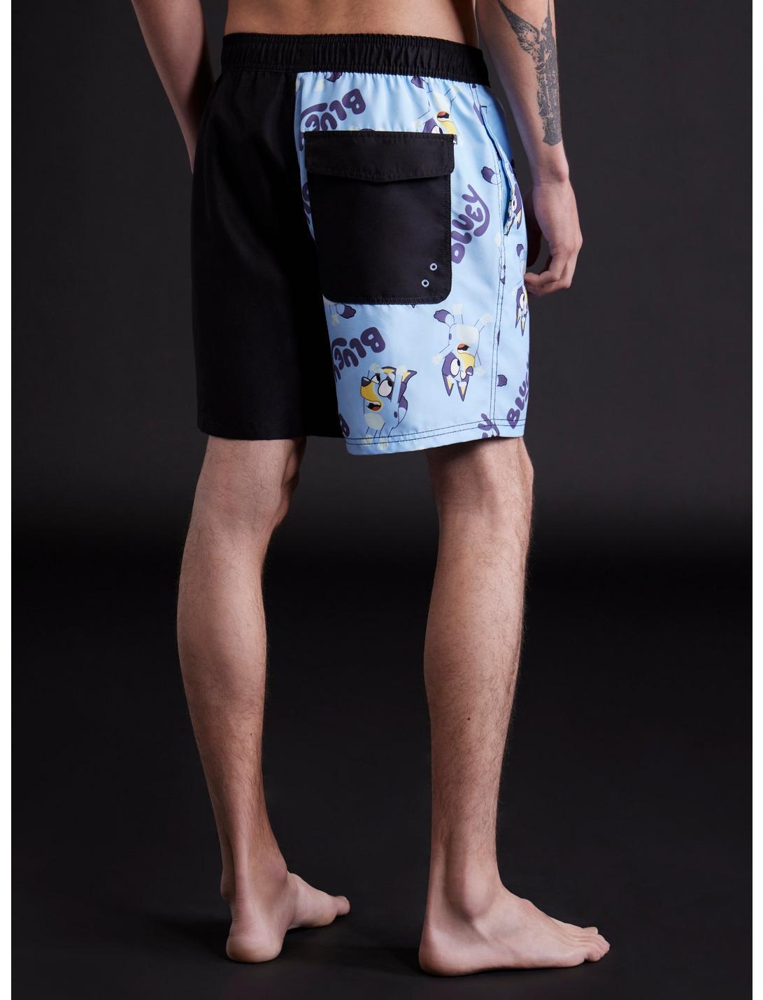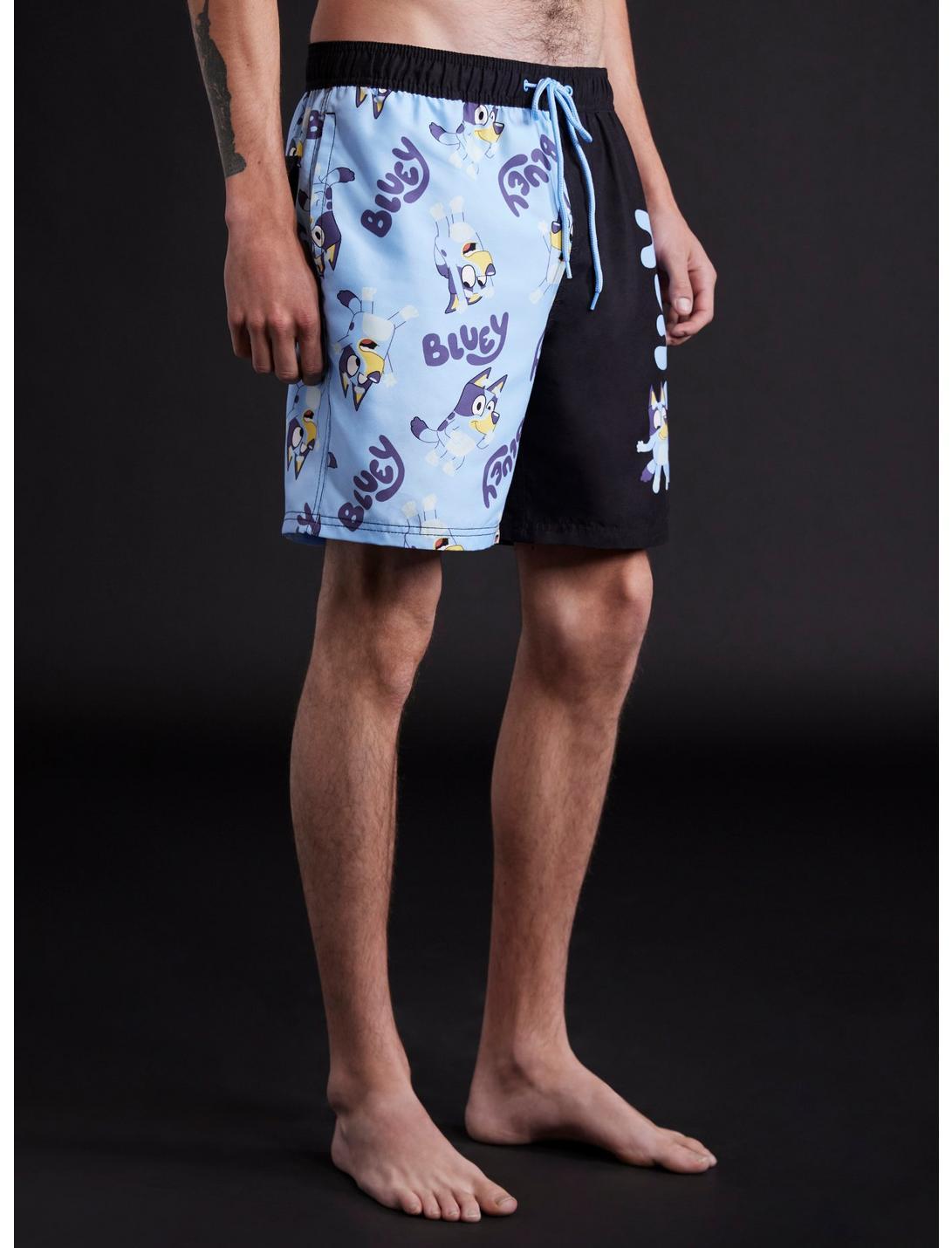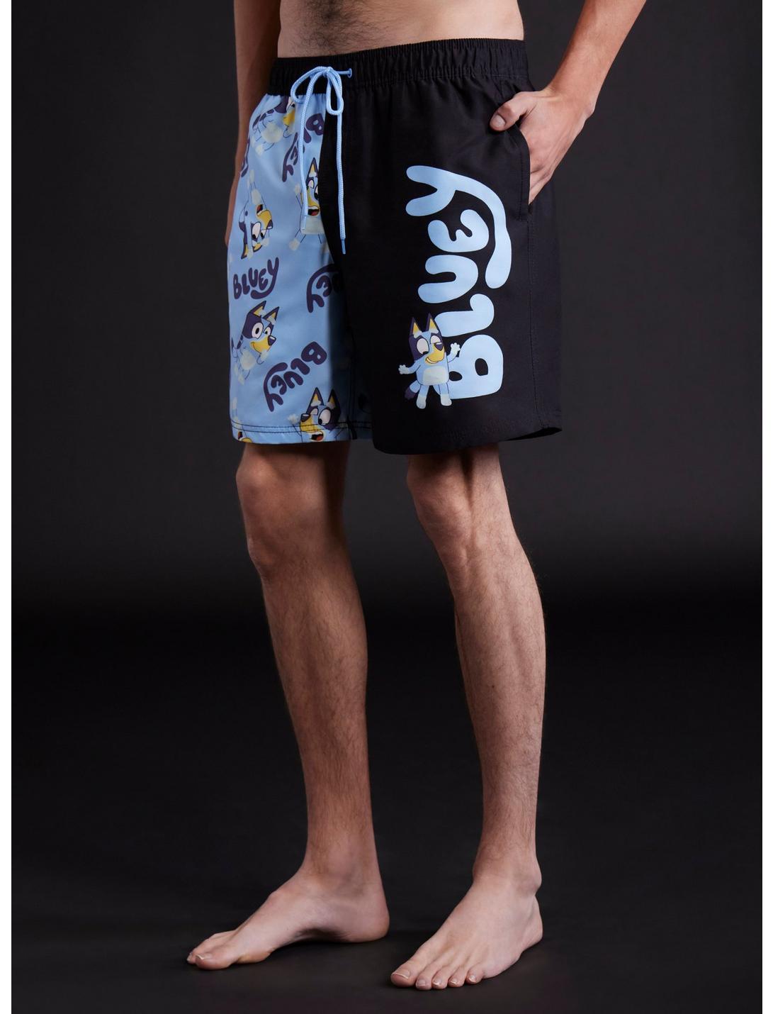 Swim day! Hooray! Make a splash in these Bluey trunks, featuring a split design with Bluey all over. Comes with mesh lining, hip pockets, back pocket and an elasticated drawstring waistband. Swimwear can only be returned unworn with original tags intact and sanitary panel in place. 100% polyesterWash cold; dry lowMesh liningInseam: 7''ImportedListed in men's/unisex sizesModel wears size Medium