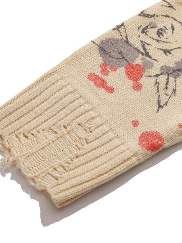 Blurred Figure Retro Print Pullover Knit Sweater