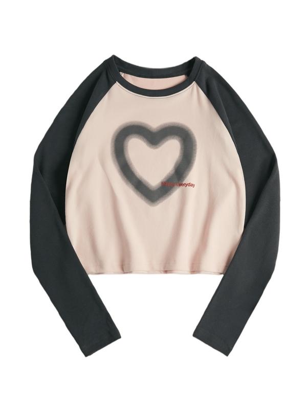 Blurred Heart Print Raglan Long Sleeve Tee