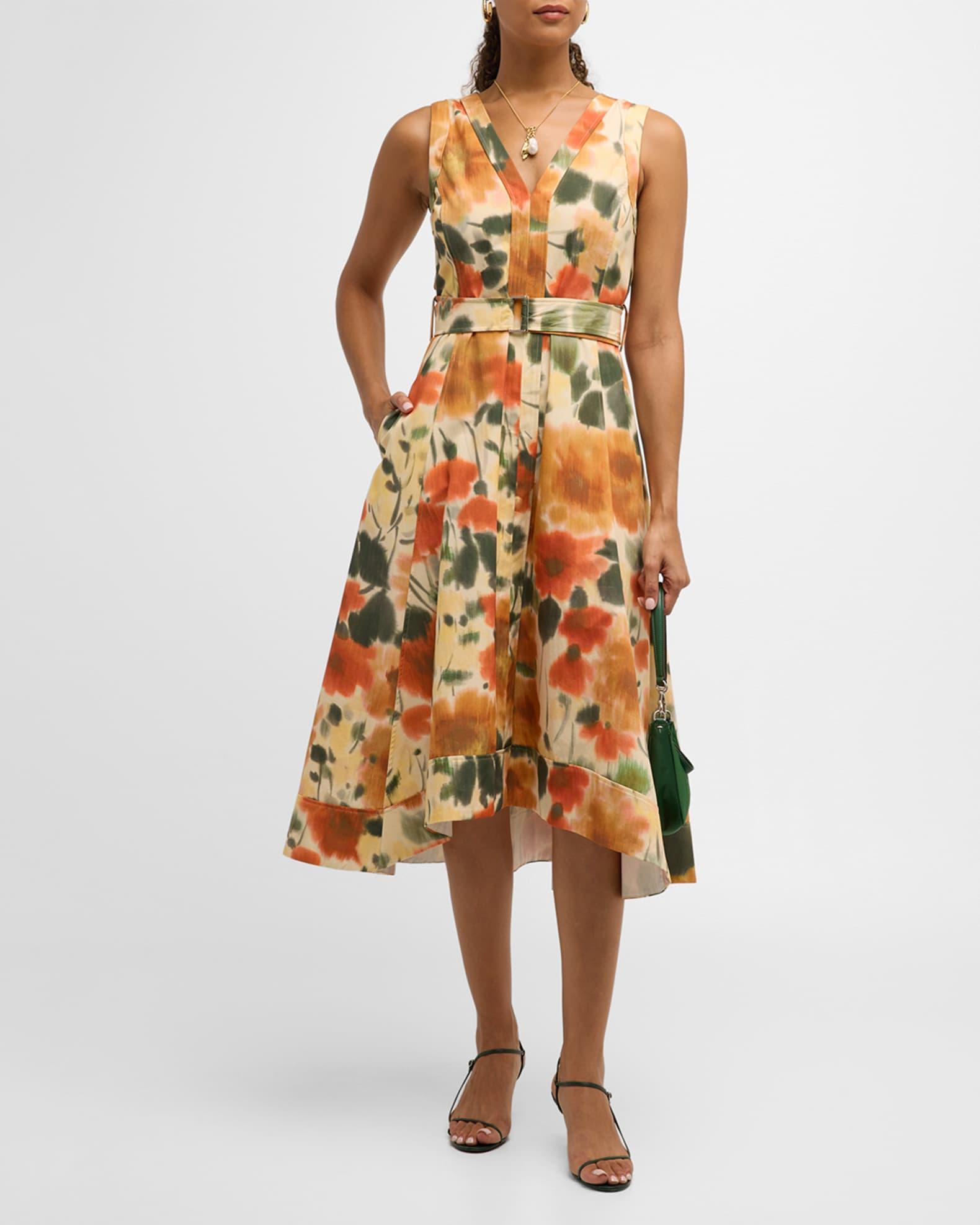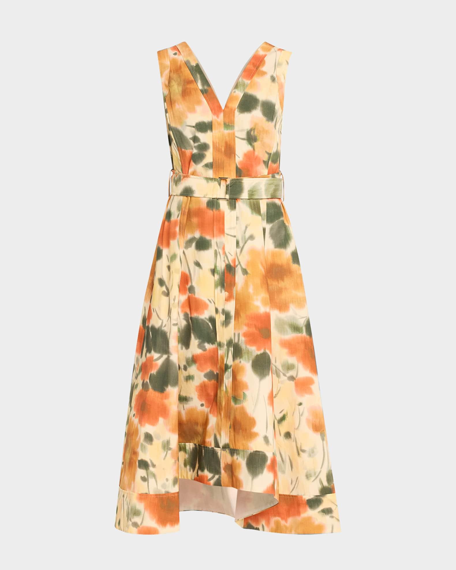Blurred Marigold Belted Midi Dress