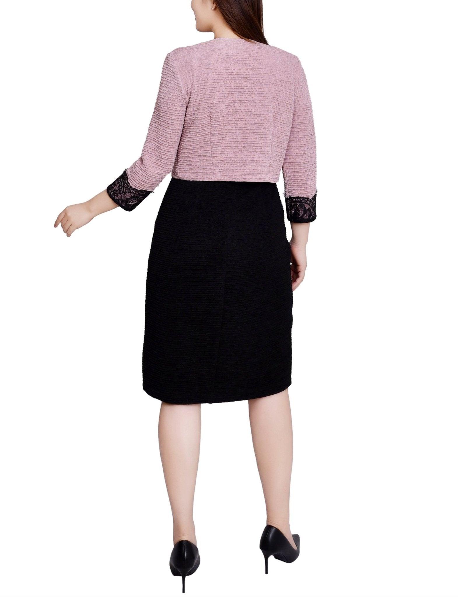 Blush Black Lace-Detail 2 Piece Textured Knit Dress Set - Petite