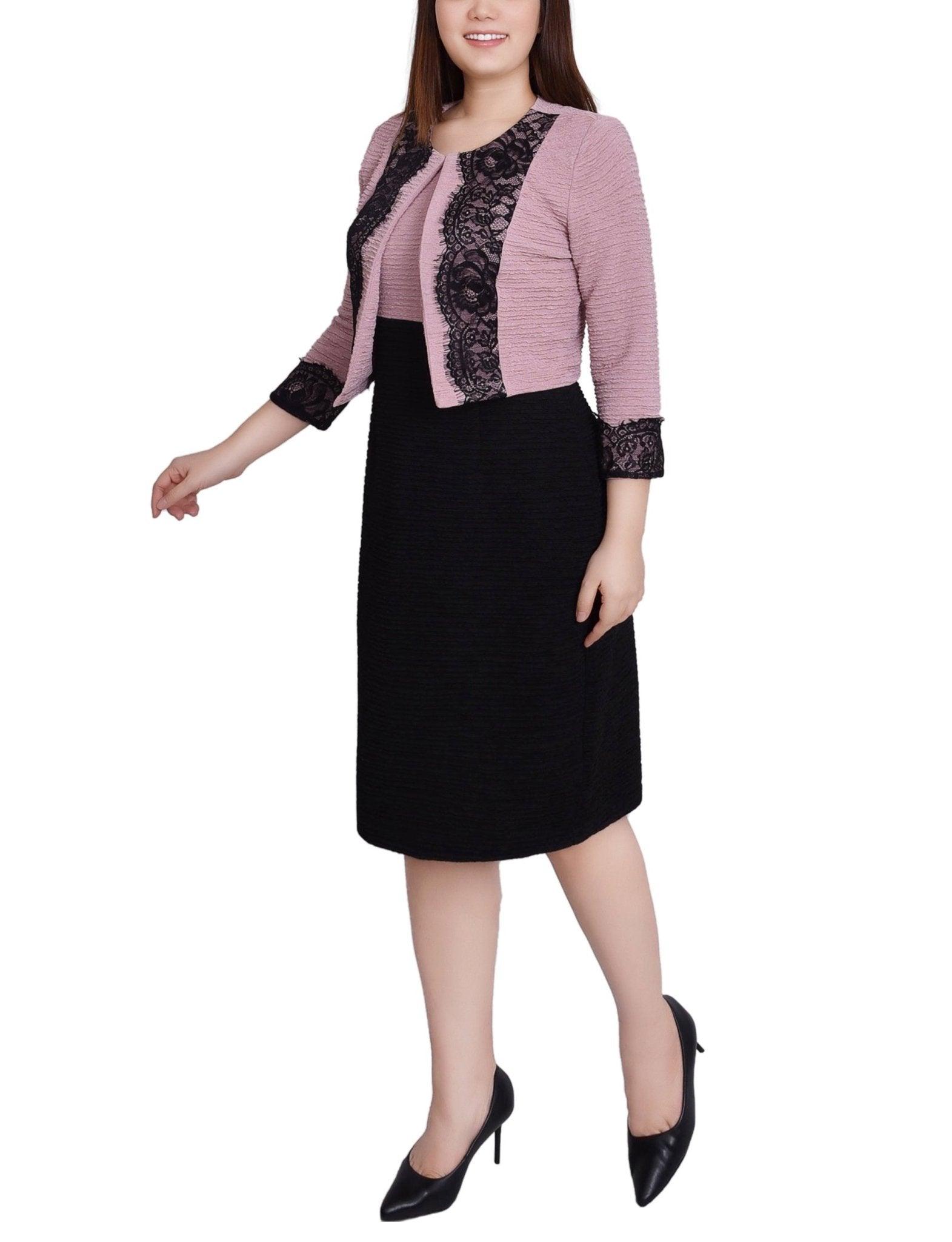 Coral Black Lace-Detail 2 Piece Textured Knit Dress Set - Petite