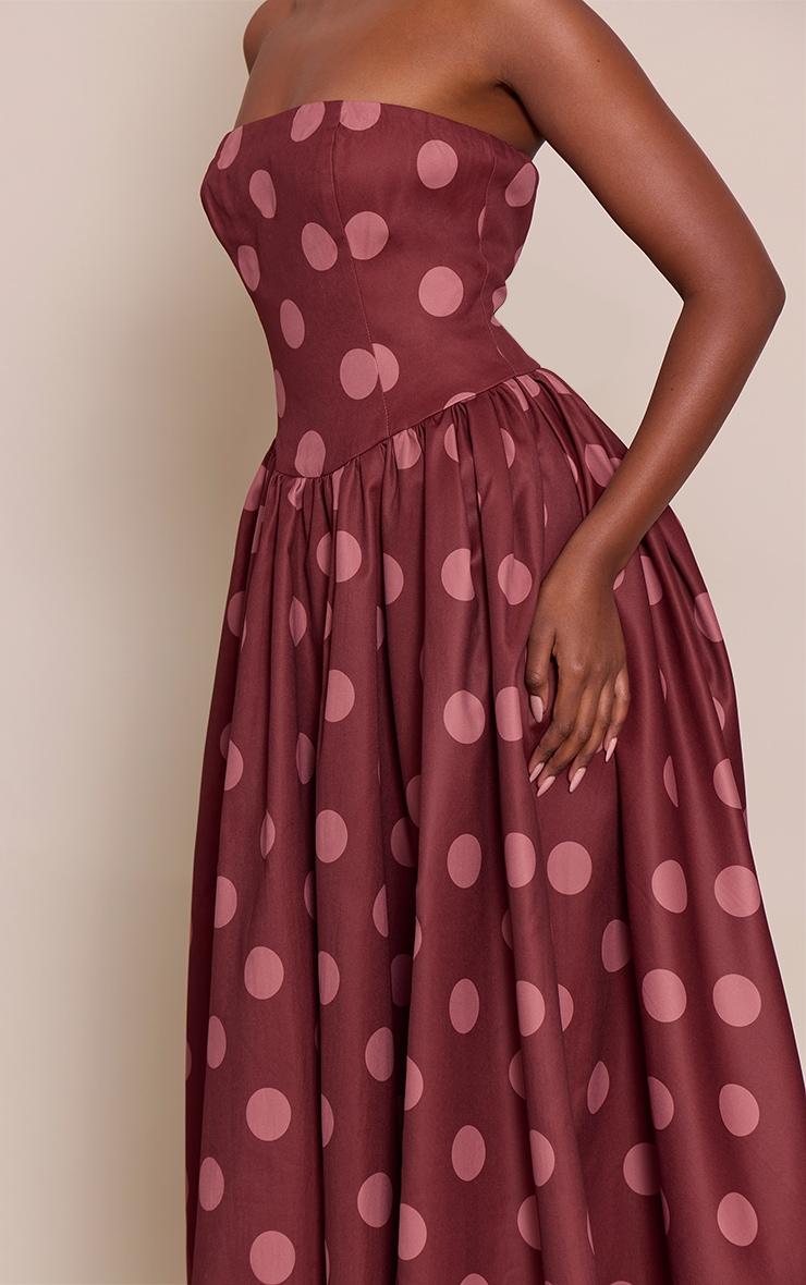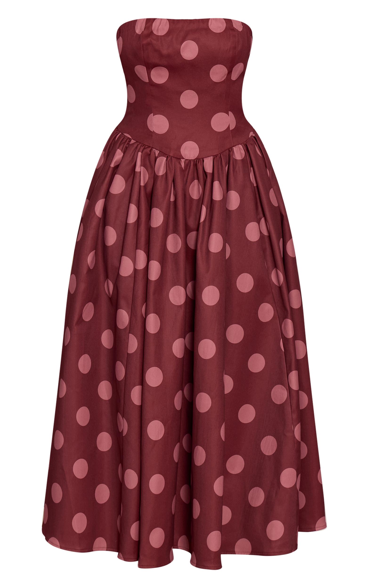 Channel confident elegance in the blush polka dot woven bandeau ruched skater midaxi dress. Crafted from a woven material, it features a bandeau neckline and a ruched bodice leading to a flared midaxi skater skirt. This dress is your definitive choice for making an entrance at any special occasion. Finish the look with bold chunky boots for an unexpected edge and elegant gold earrings.Length approx 124.5cm/49inch (Based on sample size US 4)Model wears size UK 8/ EU 36/ AUS 8/ US 4Model Height - 5ft 9inchp]:!mb-4inch>Brand: PrettyLittleThingCategory: DressesProduct type: Shift DressColor: BlushMaterial: Tailored WovenOccasion: Occasion