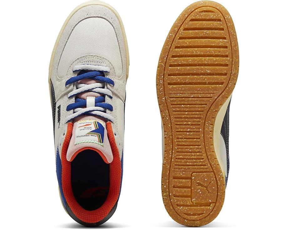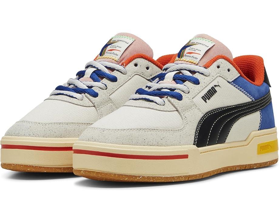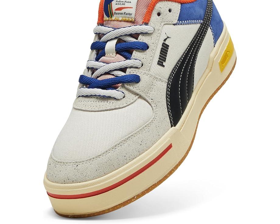 Designed with a winning attitude, the PUMA® Ca Pro Classic Podium feature bright, vibrant colors, vintage PUMA graphics, and track-inspired detailing to create sneakers that can't be beaten. Whether you're taking the field in Paris, or cheering on your country from home, feel like a winner in these. The low-op sneakers are designed with a leather upper made with at least 30% recycled materials, textile lining, and a cushioned ruber insole. The exquisite craftsmanship includes a synthetic leather formstrip with stitching details, a round suede leather toe, and back quarter overlays with textile webbing on heel overlay. The synthetic leather heel flap with debossed and screen printed PUMA® branding adds an authentic touch and the lace-up closure is designed to provide a secured fit.