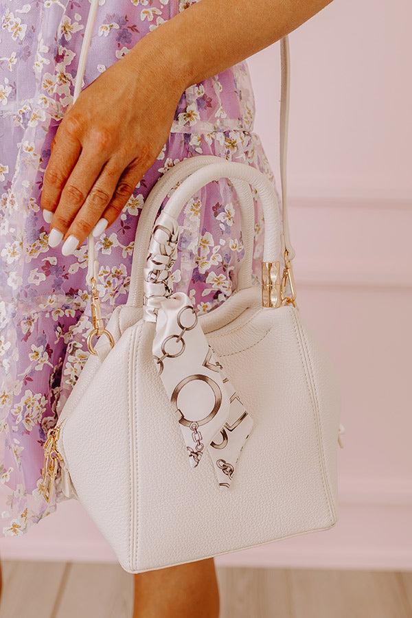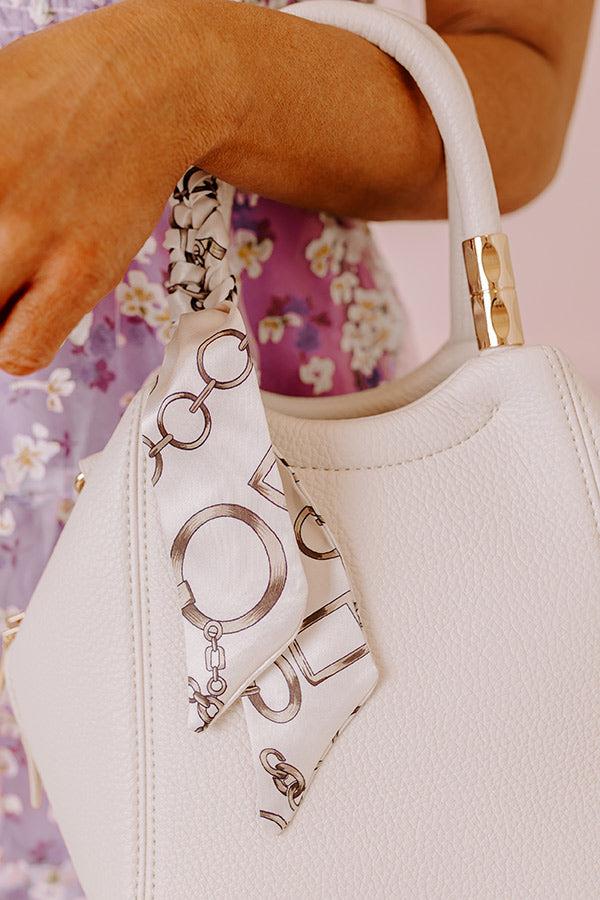- This trendy purse is the chic accessory you need to tie your look together! - Pebble textured faux leather material - Gold colored hardware - A removable adjustable length shoulder strap - Two short handles featuring gold accent pieces as well as a wrapped tie accent with a satin finish and a chain link print - Top zip closure - A fully lined interior with two additional pockets