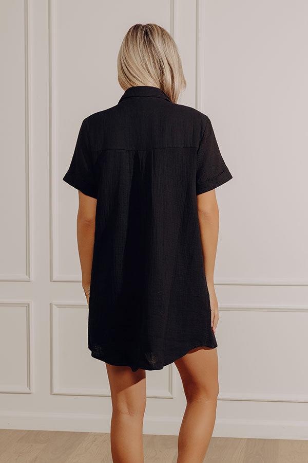 - Embrace sunny style with this cutie! With its relaxed fit and effortless charm, this adorable mini dress is perfect for boardwalk strolls, lakefront adventures, and all your laidback plans. - Subtly textured material - A built-in lining - A collared v-cut neckline - A buttoned bodice ending above the waistline - A functional chest pockets - Short sleeves with rolled cuffs - A relaxed silhouette that ends in a straight, mini dress length hemline