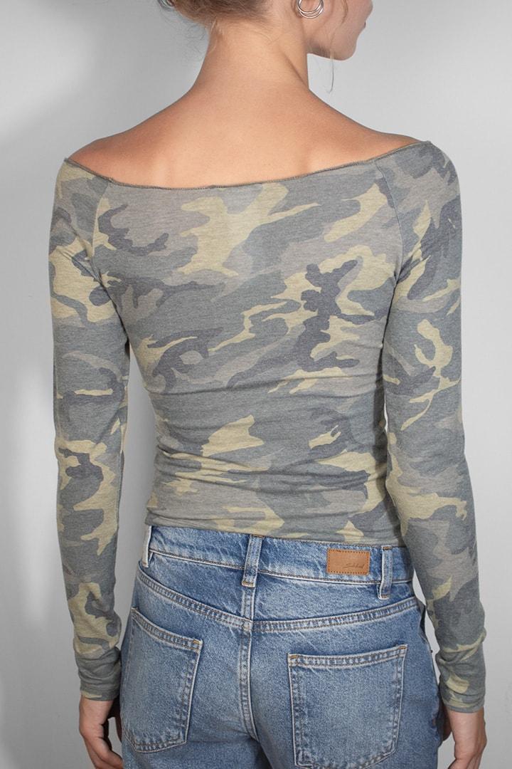 Boat neck t-shirt, long sleeves, regular length, slim fit.