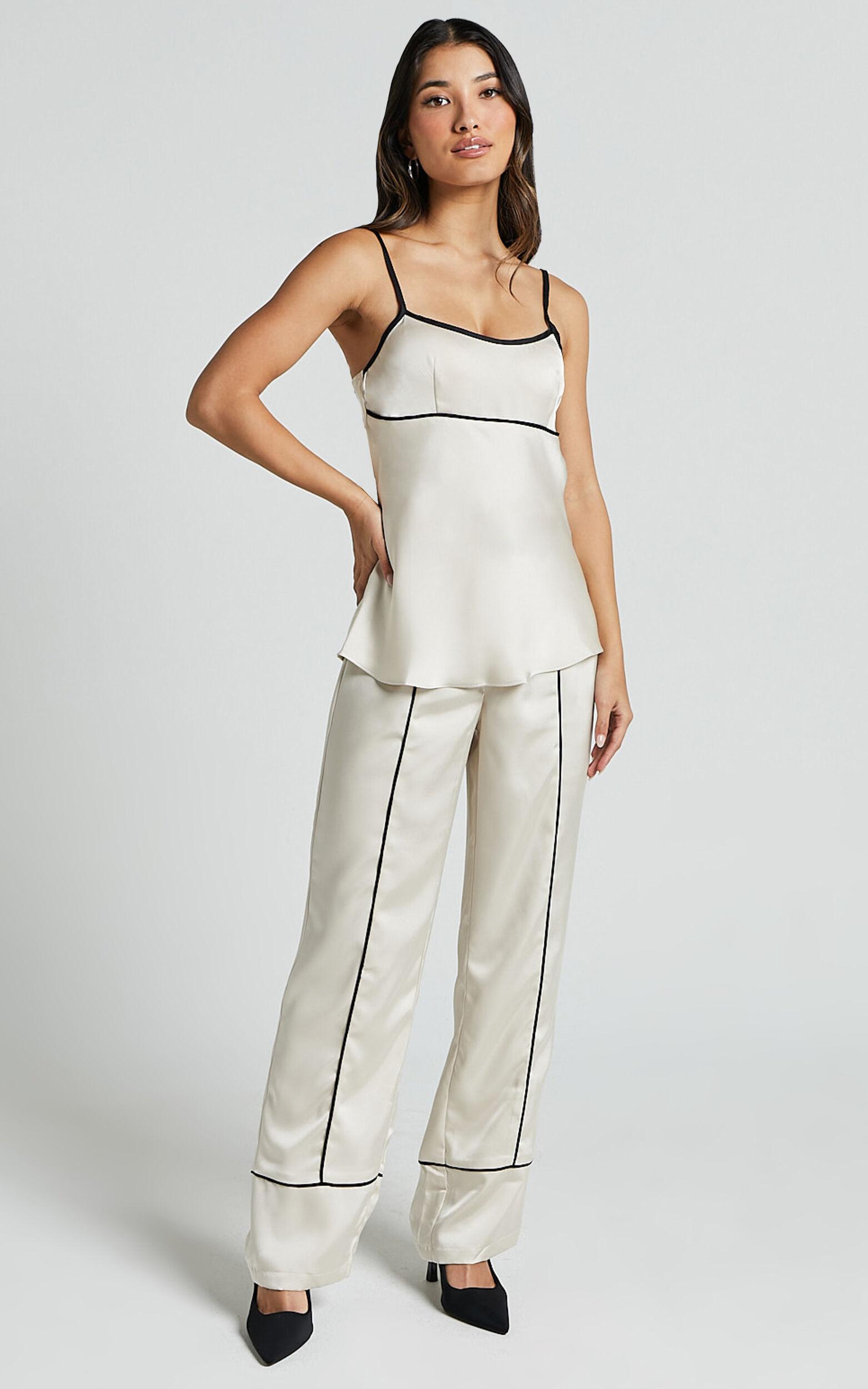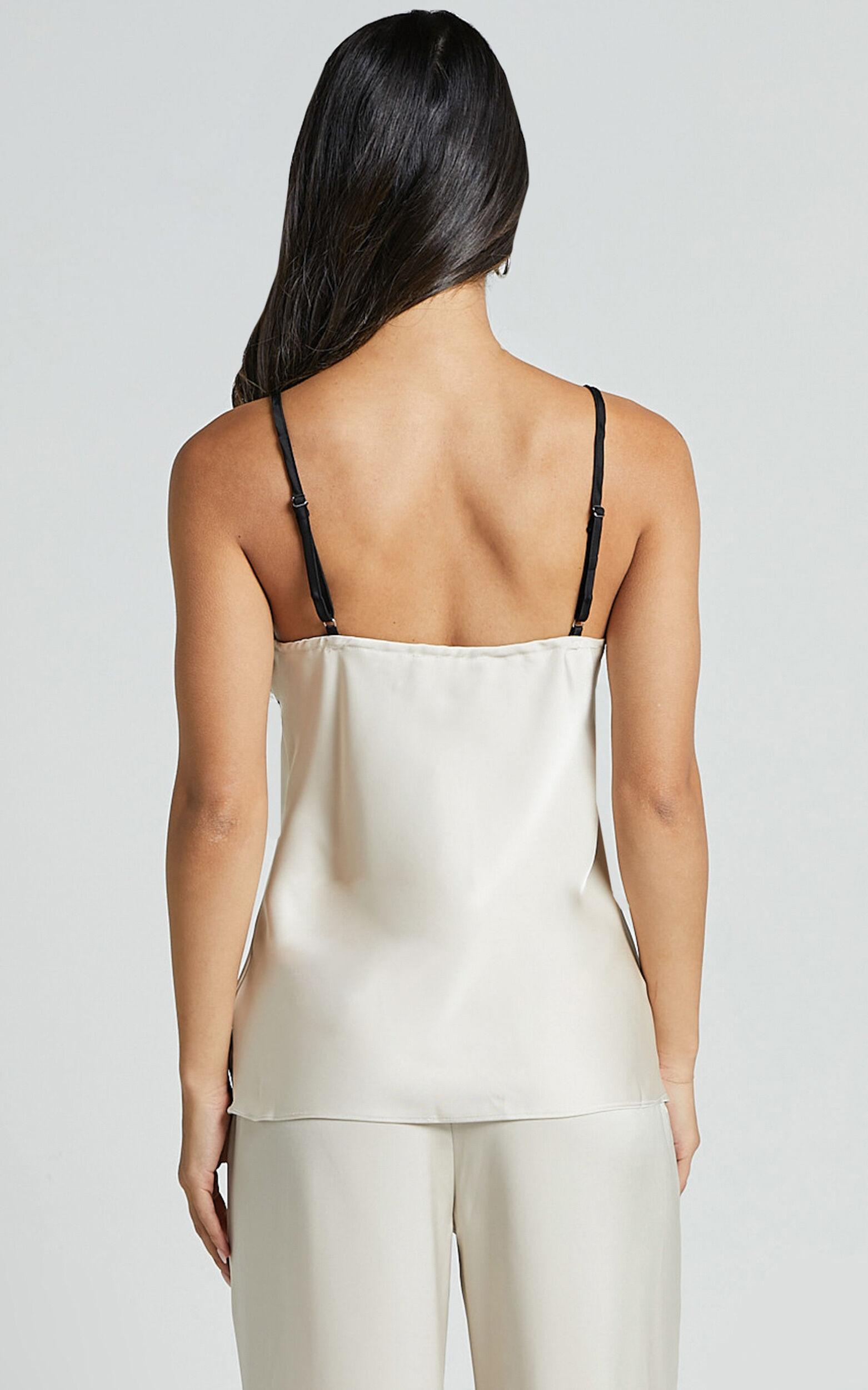 Get ready to turn heads in the Bobbie Top - Contrast Piping Detail Satin Top In Oyster. This stunning white satin top is the perfect addition to your party night wardrobe. With its scoop neckline and sleeveless design, it offers a modern and chic look that's sure to make you feel empowered. Made from high-quality polyester, this fashion top not only looks fabulous but also feels incredibly comfortable against your skin. The contrast piping detail adds a touch of sophistication and elevates the overall style of this must-have piece. Whether you're heading out for a night on the town or attending a special event, the Bobbie Top is here to ensure you stand out from the crowd in all the right ways.Product Details:Pull on styleFashion TopsSatin fabricScoop necklineParty Night readyStandard lengthSleeveless designPolyester materialSize and FitSize S / 8 length: 45.5cm / 17.91inMaterial and CarePolyesterLow Stretch