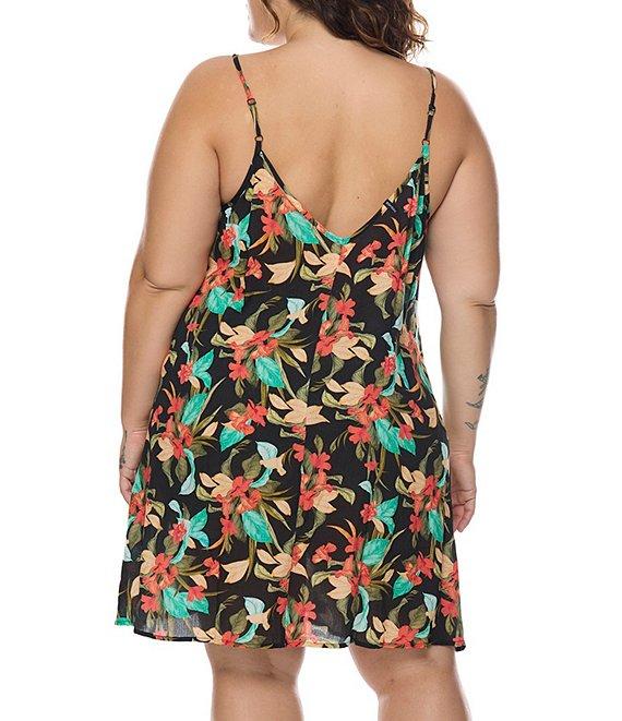 Body Glove Plus Size Nicole Floral V-Neck Dress Swim Cover-Up