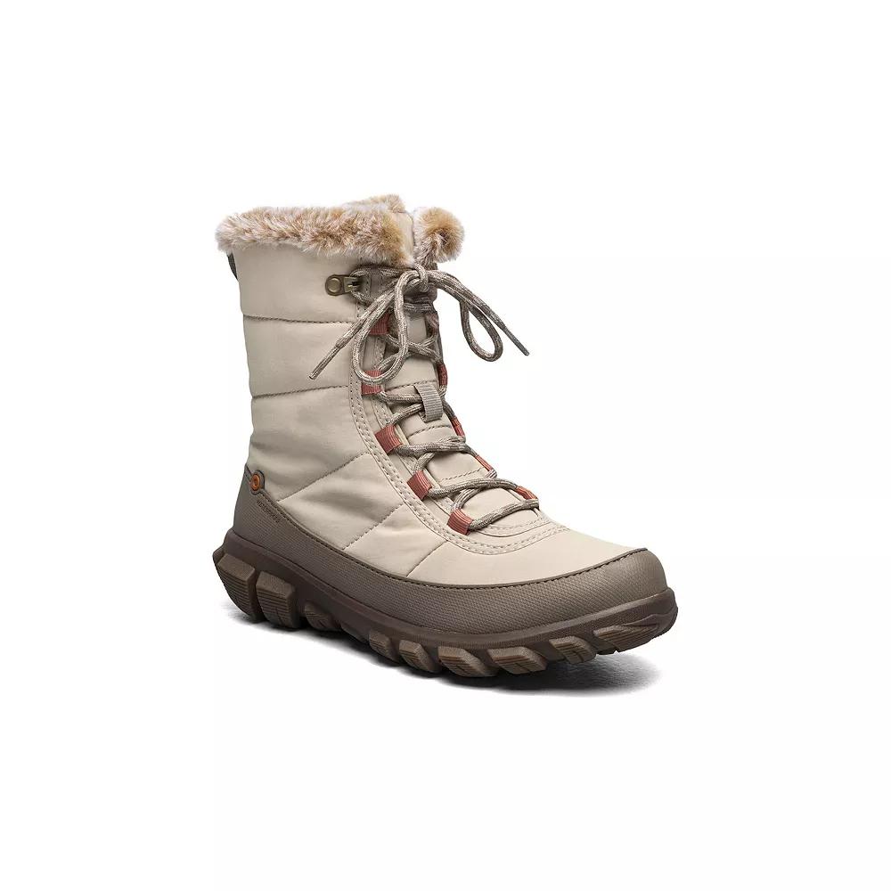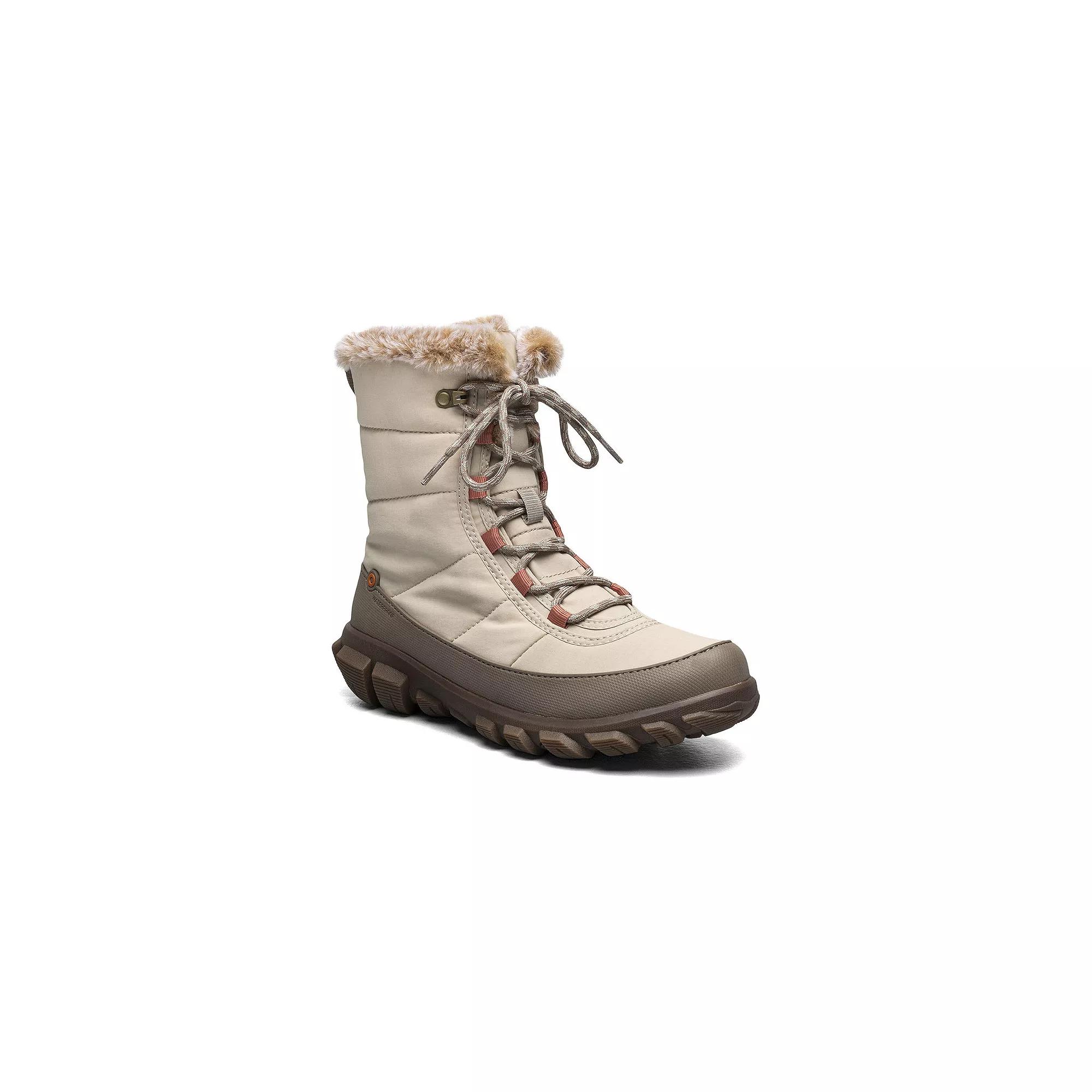 Embrace the elements in style with these chic boots from Bogs, designed to keep you looking effortlessly fashionable no matter the weather. With exceptional comfort across a wide temperature range, a waterproof exterior, and odor-fighting technology, these lace-up quilted boots are ready for every adventure you embark on this season. Click this FOOTWEAR GUIDE to find the perfect fit and more! - https://www.kohls.com/feature/shoesizeguide.jsp. FEATURES: 100% Waterproof construction for reliable protection in wet conditions, BioBased insole and DuraFresh technology to combat odors, BOGS Max-Wick technology to keep feet dry and comfortable, Comfort range from 5°F to 85°F (-15°C to 29°C) for versatile wear. DETAILS: Plain toe, Lace-up closure, Pull-on, Treaded outsole, Removable insole, Imported. FIT & SIZE: Low shaft, mid-calf design, Shaft circumference: 13 inches, Shaft height: 8 inches. MATERIAL & CARE: Contains faux fur, Synthetic upper material, Polyurethane footbed, Faux fur lining, Rubber midsole and outsole, Spot clean. Color: Oatmeal. Gender: female. Age Group: adult. Material: NYLON.