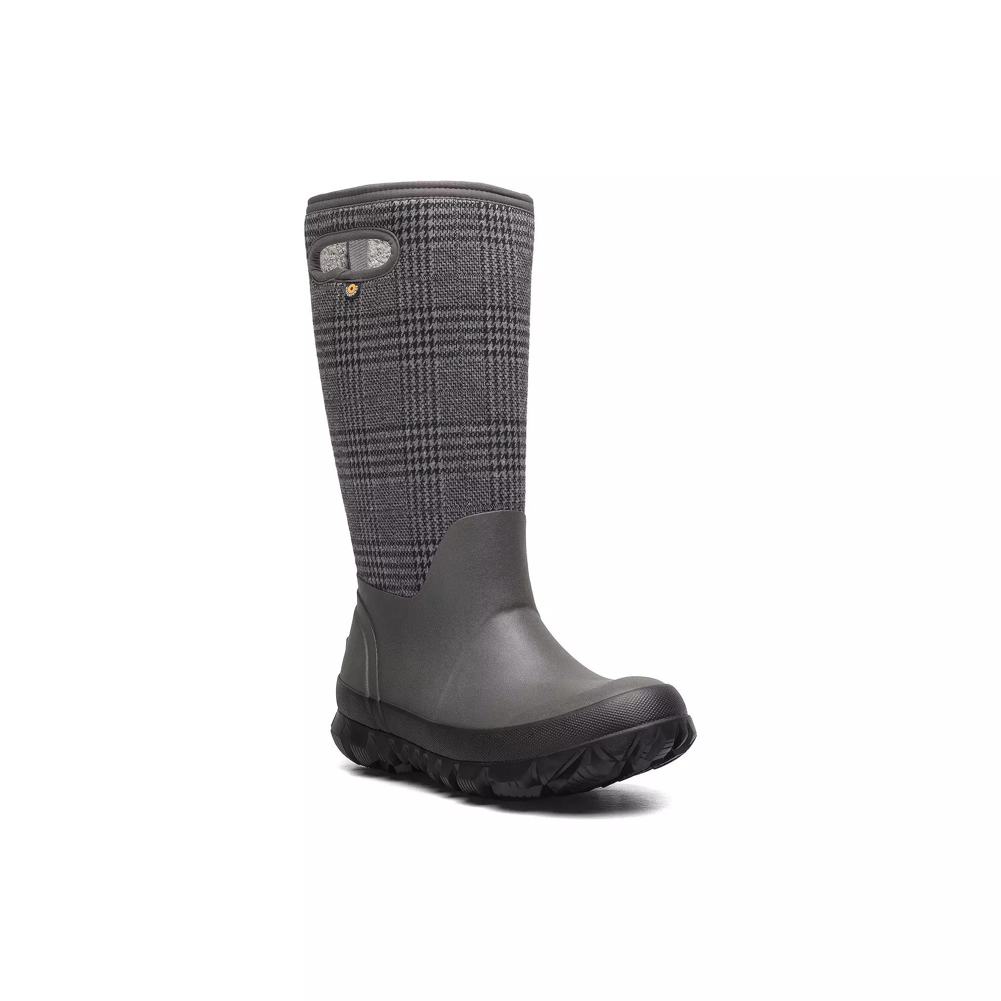Embrace the elements with Bogs waterproof rain boots, designed to keep your feet dry and comfortable no matter the weather. With a stylish plaid design, these boots provide both warmth and stability, making them perfect for your winter adventures or simply navigating rainy city streets. Click this FOOTWEAR GUIDE to find the perfect fit and more! - https://www.kohls.com/feature/shoesizeguide.jsp. FEATURES: 100% waterproof construction to keep feet dry, 5mm Neo-Tech upper for medium-weight comfort, Soft fleece lining with Max Wick and Durafresh coating for all-day comfort, Internal steel shank for maximum support and stability, GlacialGrip outsoles designed for frigid temperatures and icy conditions, Comfort range from -58°F to 40°F (-50°C to 4°C) for cold-weather warmth, Kick-off heel lug for hands-free boot removal. DETAILS: Plain toe, Pull-on closure, Treaded outsole, Removable insole, Imported. FIT & SIZE: Knee high design, Boot shaft circumference: 15 inches, Boot shaft height: 14 inches. MATERIAL & CARE: Neoprene upper, Polyurethane footbed, Fleece lining, Rubber midsole and outsole, Spot clean. Size: 7. Color: Cement Team. Gender: female. Age Group: adult. Material: SYNTHETIC.