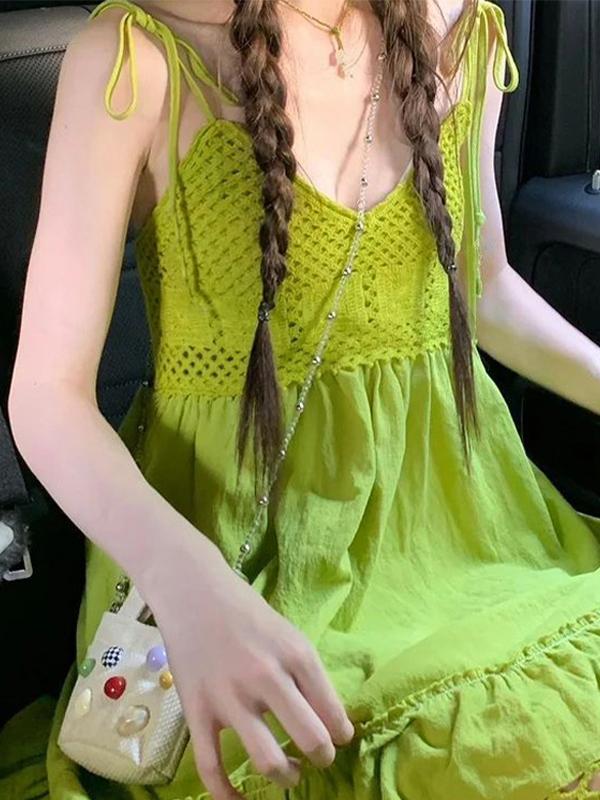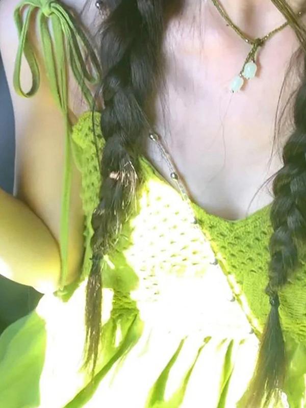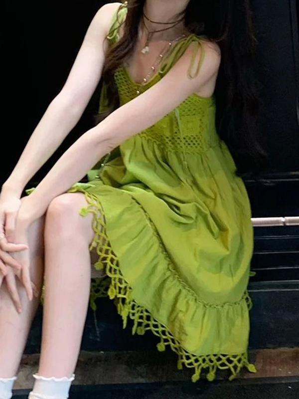 Bohemian Green Tassel Suspender Belt Mini Dress