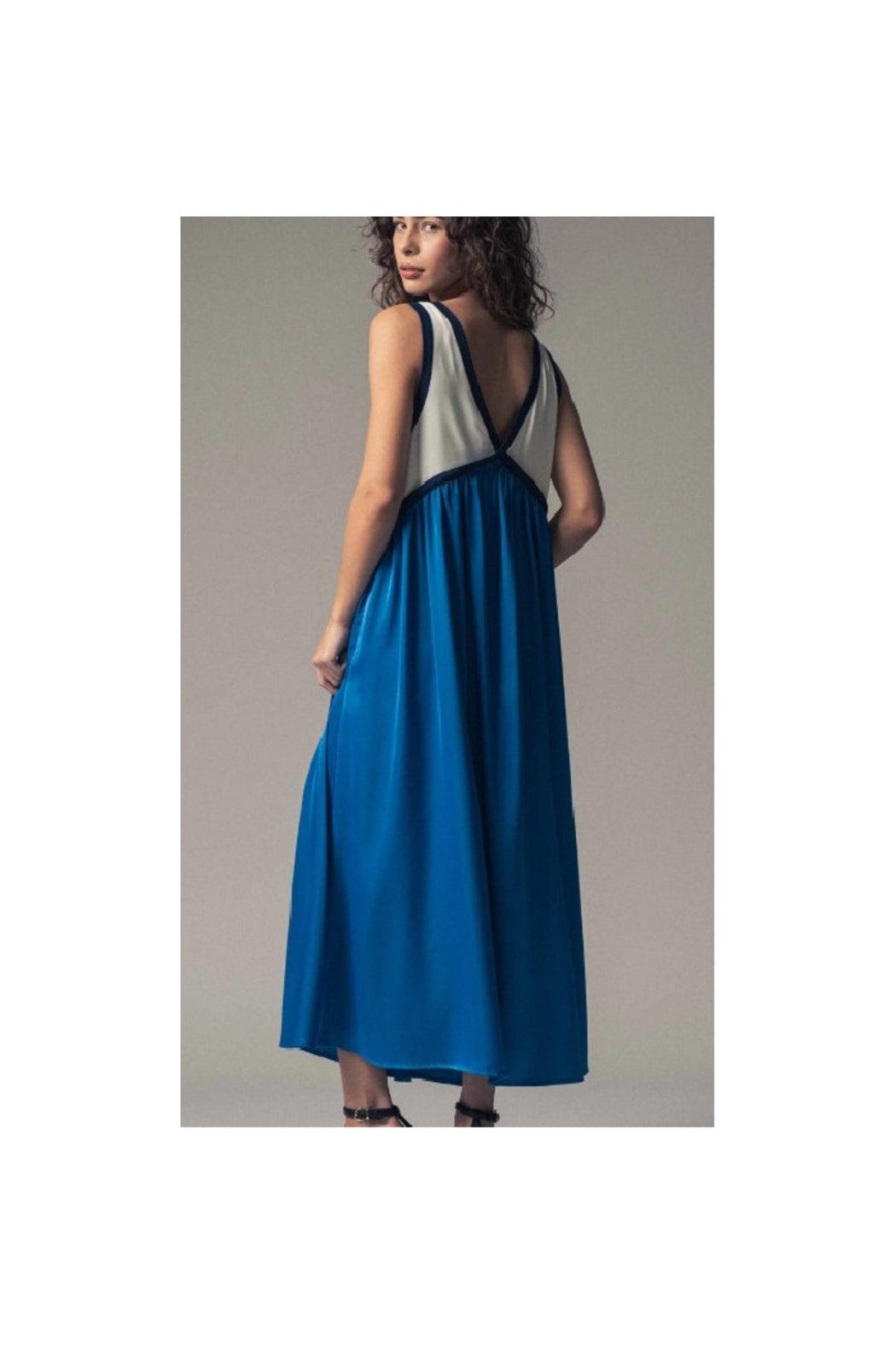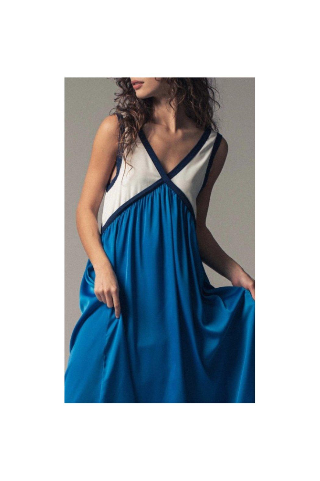 This boho-inspired maxi dress features a chic colorblock design with a flowy silhouette, perfect for summer dress days or western-inspired sets. Crafted from lightweight, breathable fabric, it's ideal for staying cool and stylish at any event.