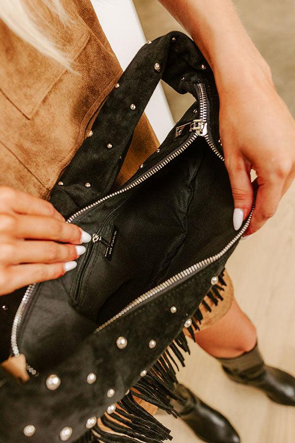 Boho Feels Faux Suede Fringe Purse in Black Product Image