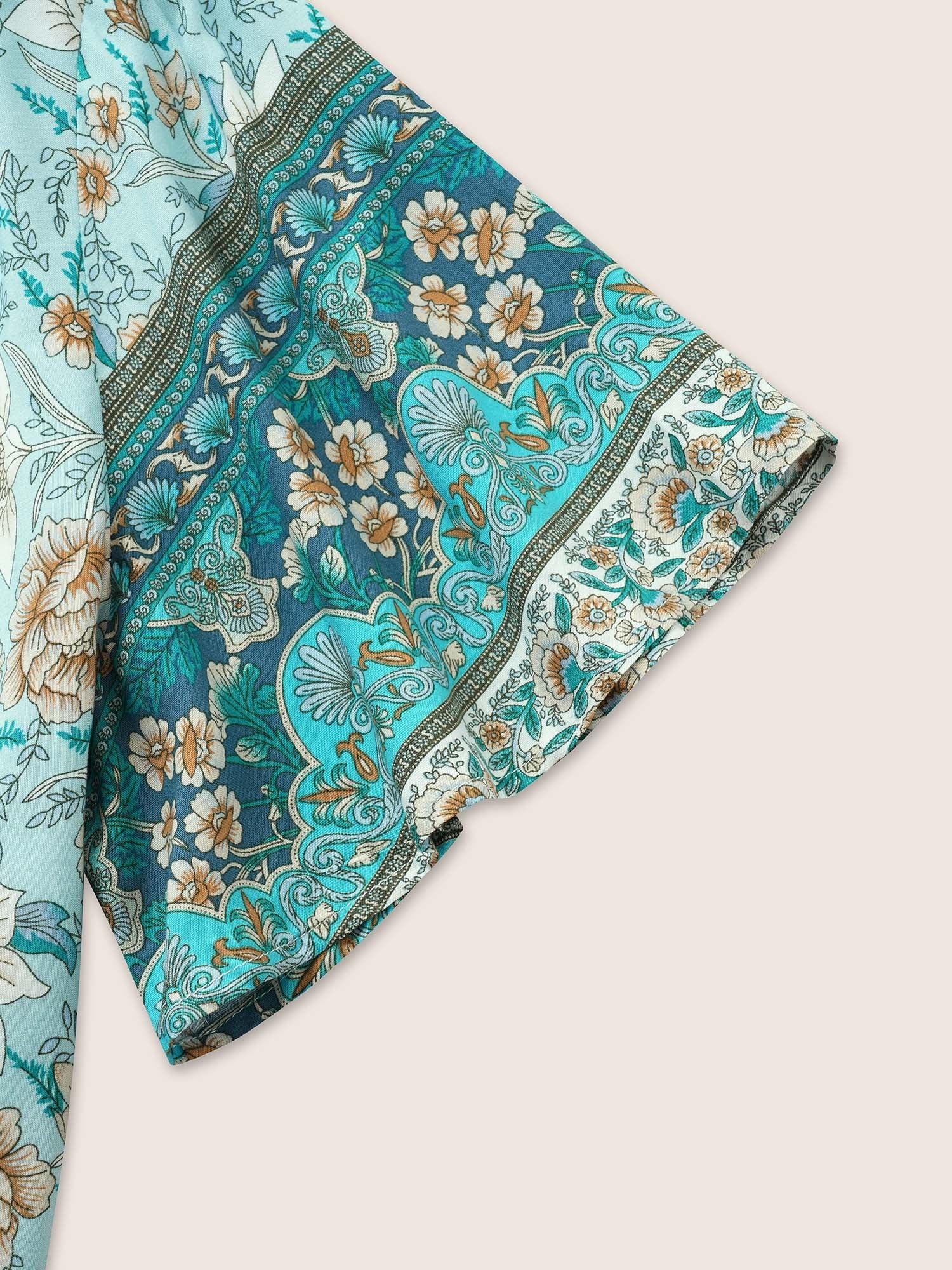 Shop Boho Print Tie Neck Gathered Blouse now and redefine your style with confidence at BloomChic. Tailored for mid and plus-size women. This trendy Tops Women, sizes 10-30. Color:Cerulean;Pattern Type:Bohemian Print;Neckline:Notched collar;Sleeve Type:Ruffle Sleeve;Details:Cross straps, Gathered;Pocket:No-pocket