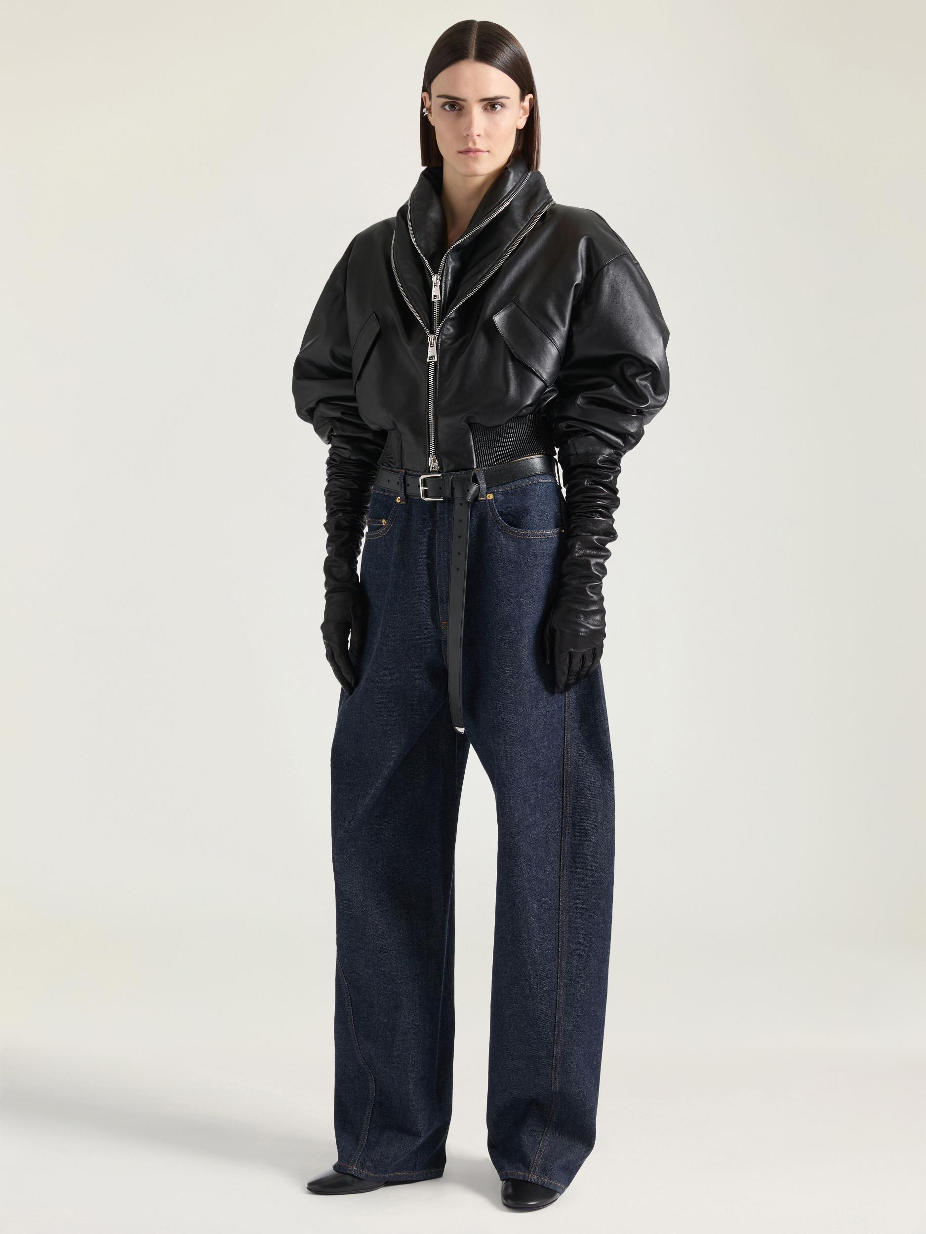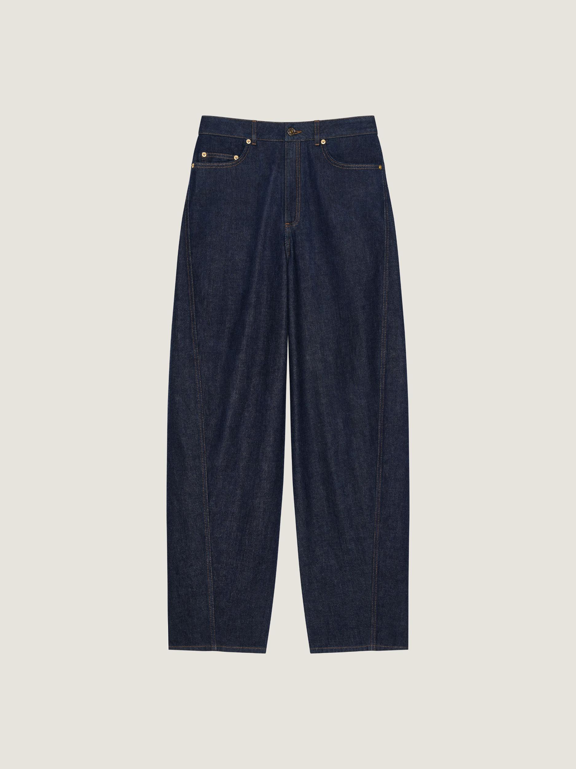 Jeans in denim. Waist with loops, zipped and button closure. GIVENCHY engraved button. GIVENCHY leather patch on the back. Three front pockets. Two back pockets. Bias seams for a cocooning volume. Model measures 5.8 Feet and wears a size 26.