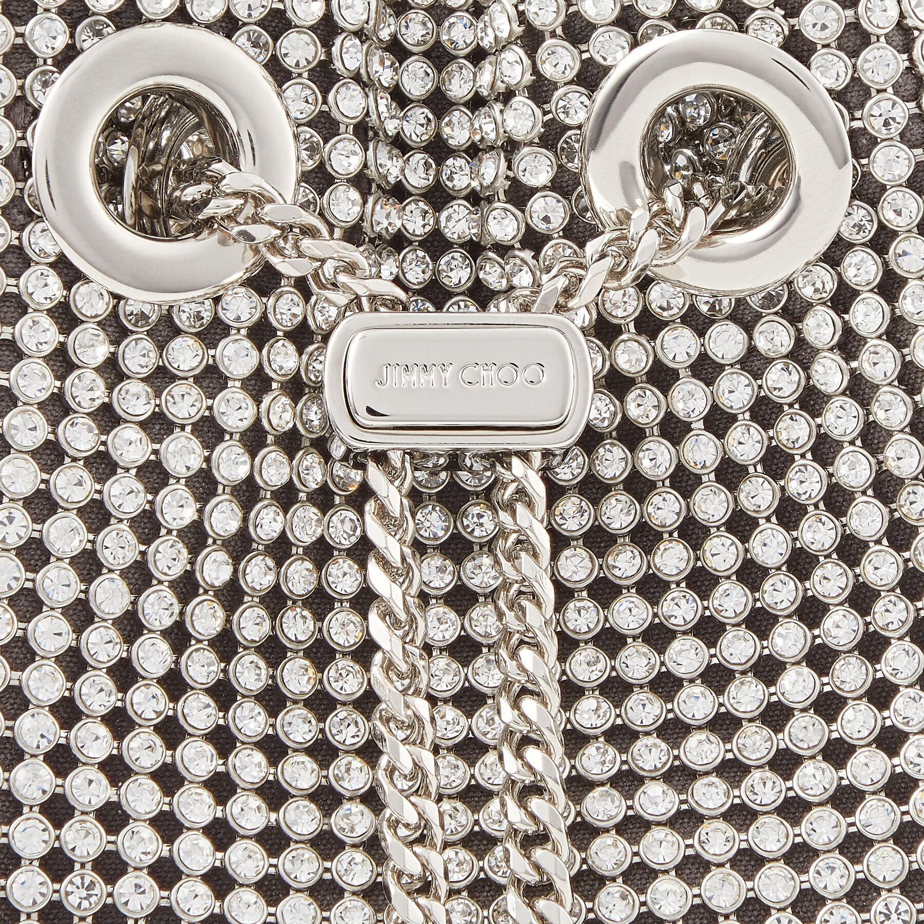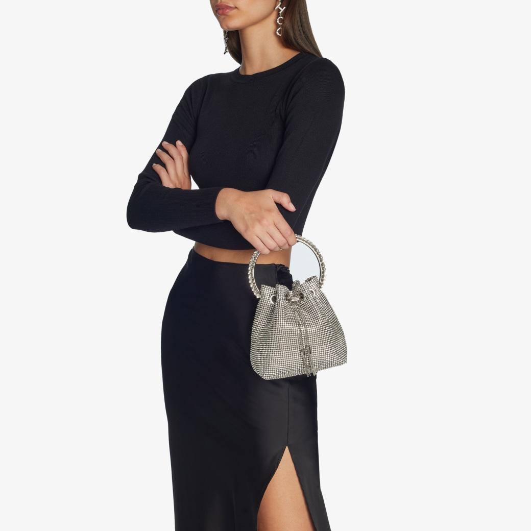 Silver Satin Crystal Mesh Bag with Crystal Handle