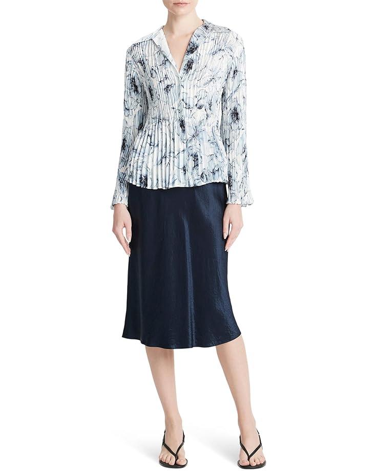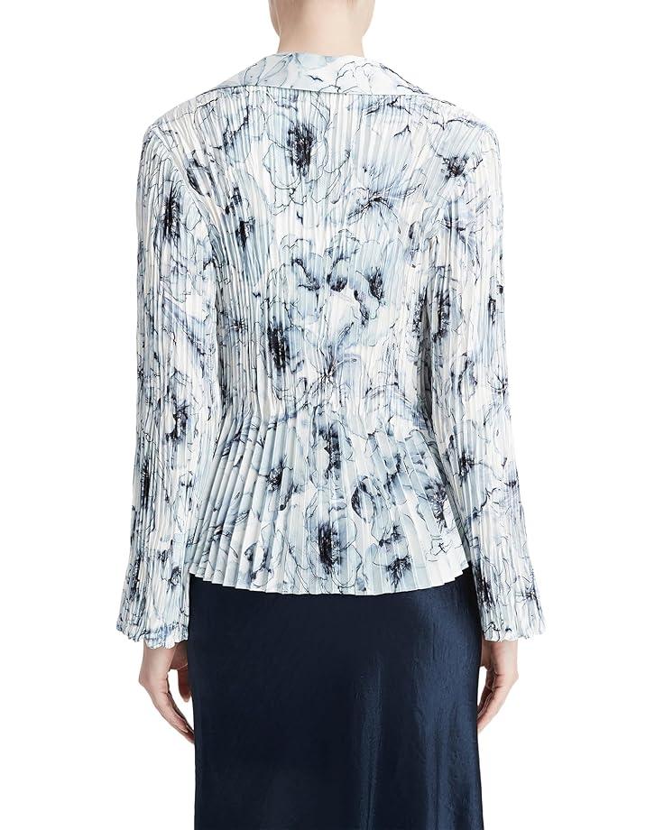 Look pretty in the fabulous and pleated floral satin Vince® Washed Lily Pleated Blouse featuring a split neckline with spread collar and long sleeves. The pullover style gives a faux front closure appeal that adds to the sophistication of its design.