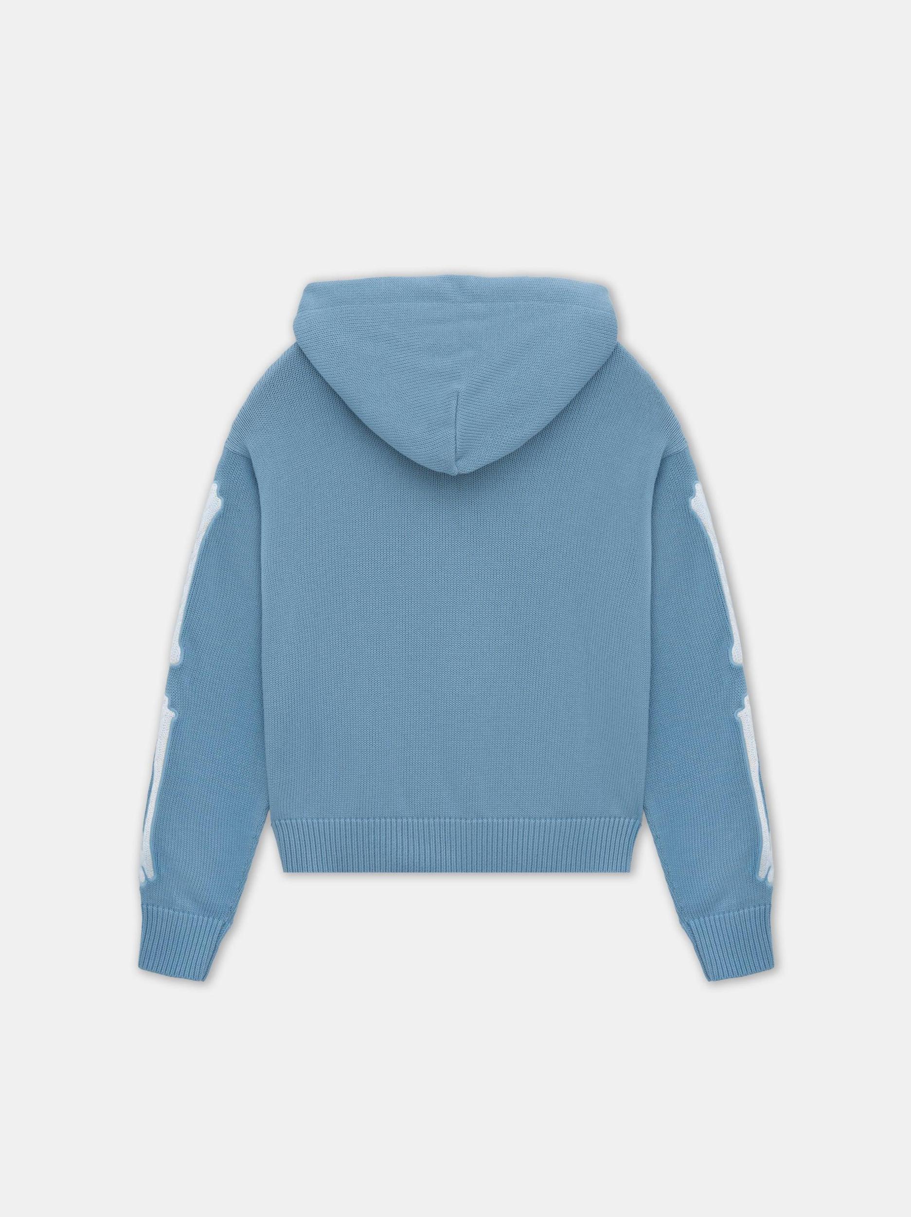 The Pre-Spring 2025 menswear collection reintroduces house icons in seasonal colors. Crafted in knit Egyptian cotton, the Bones Hoodie features the house's signature bones motif and is finished with a kangaroo pocket and fine rib accents. PRE-SPRING 2025 COLLECTION MADE IN ITALY 100% EGYPTIAN COTTON