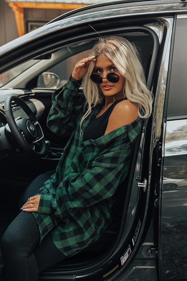 We guarantee you'll want to snap a photo by the 'Bonfire' with this tunic dress! Features a lightweight plaid material that is meant to be worn off shoulder, a collared neckline, long sleeves with button closure cuffs and accent buttons on the front, and a sewn in ribbed dress with a very feminine silhouette. Measurements S : Bust 28", Hip 30", Length 32.5", Sleeve Length 23.5", Waist 29". M : Bust 30", Hip 32", Length 33", Sleeve Length 24", Waist 31". L : Bust 32", Hip 34", Length 33.5", Sleeve Length 24", Waist 33".
