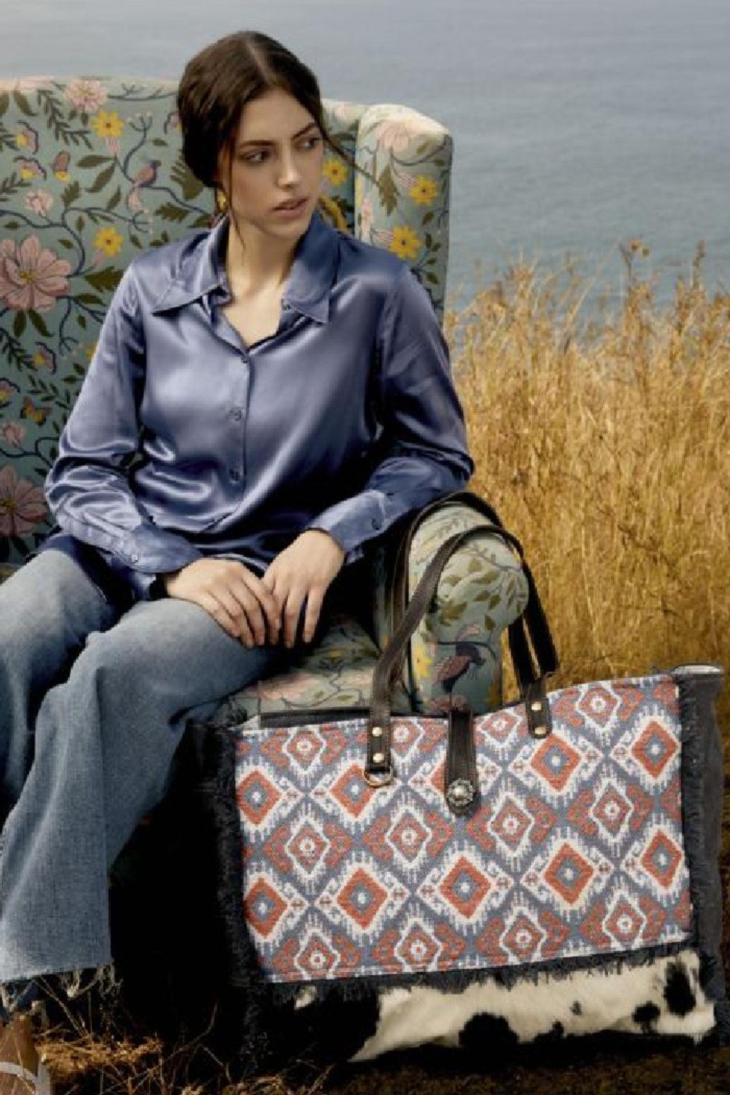 Crafted to a standard of perfection, this bag flaunts a unique design detailed with Hairon Hide, Canvas, Leather and Berber. Inside pockets. Hide coloring and markings may vary on each bag. Shoulder Strap.