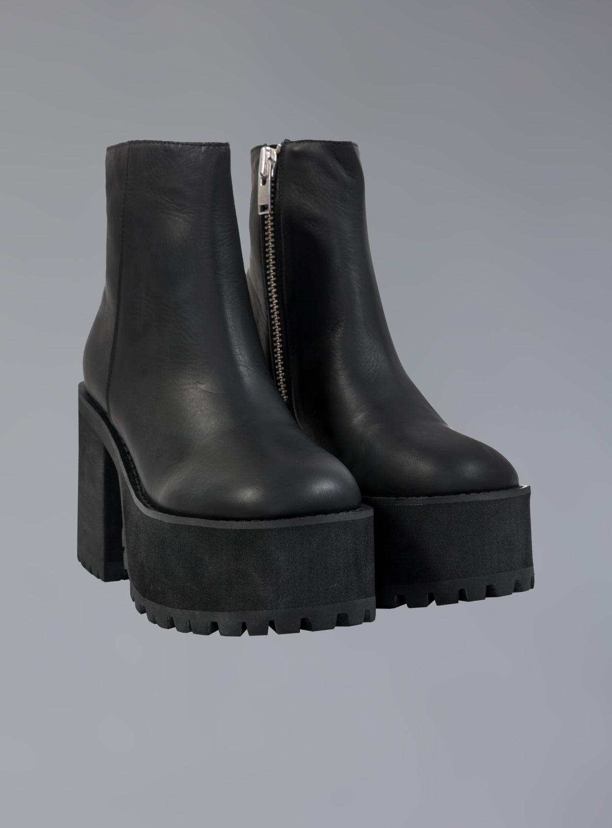 Make the Bonnie Boot your Ride or Die. Leather Ankle boot features inside zipper with heavyweight branded pull, stacked dense foam platform with rubber sole. 4" Heel; 2" Platform 100% Leather upper. Rubber sole. Fit is true to size. Click Here for a printable size chart (make sure you print at Actual Size to ensure accuracy) For any questions about sizing please reach out to our team ~