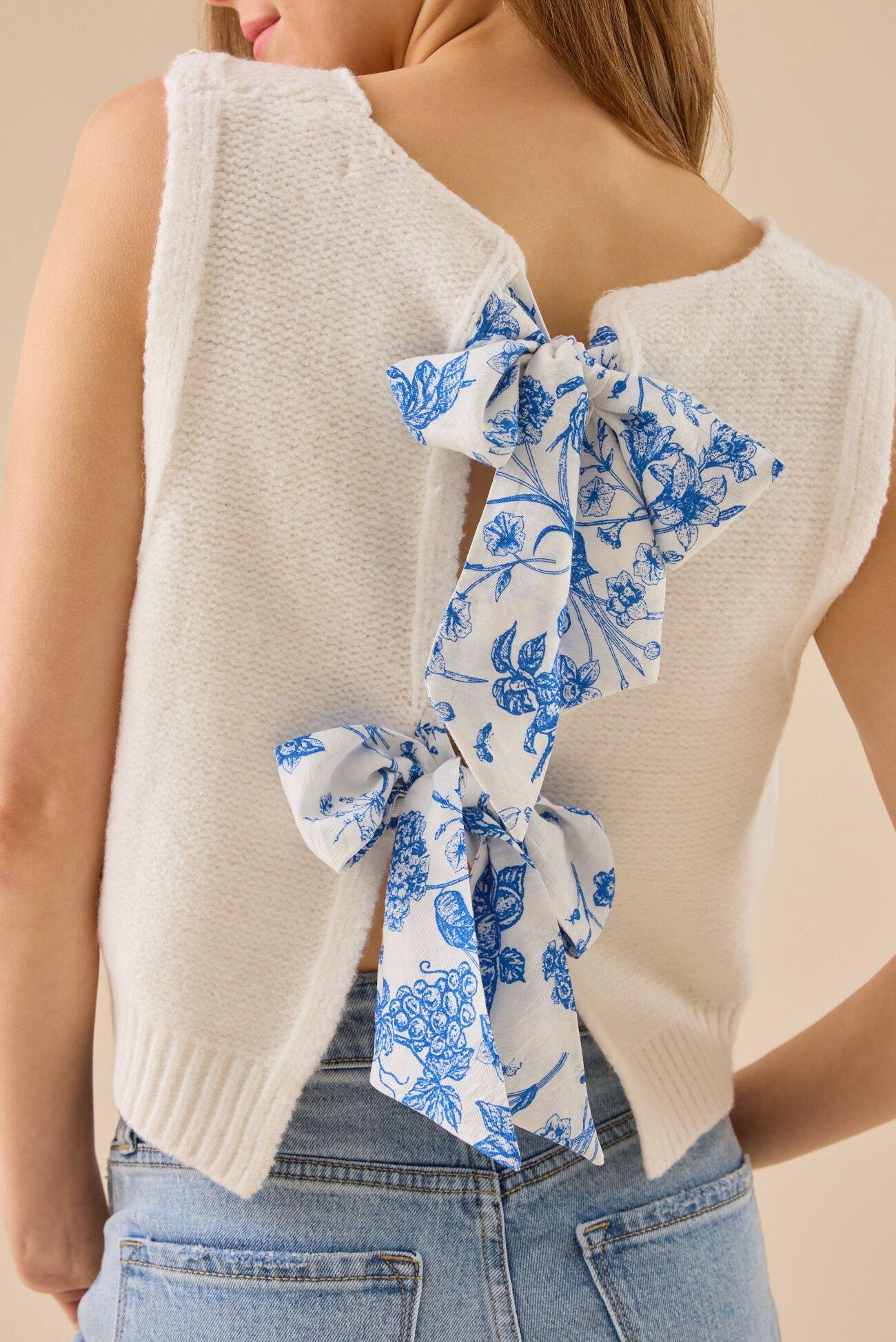 Bring a touch of elegance to your wardrobe with this chic sweater vest, featuring stylish bow details at the back. The soft, knitted fabric provides warmth and comfort, while the feminine floral bow adds a playful yet refined twist, perfect for elevating any outfit.