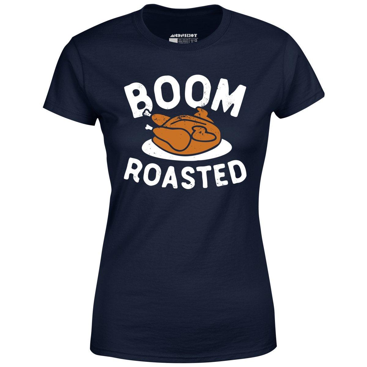 Boom, Roasted! Funny thanksgiving design. Printed on our super soft 100% ringspun & combed cotton women's T-Shirt. Or upgrade to our Luxury 52/48 cotton/poly vintage heather edition for an even softer classic look. We print & ship all of our high quality graphic tees in the USA.
