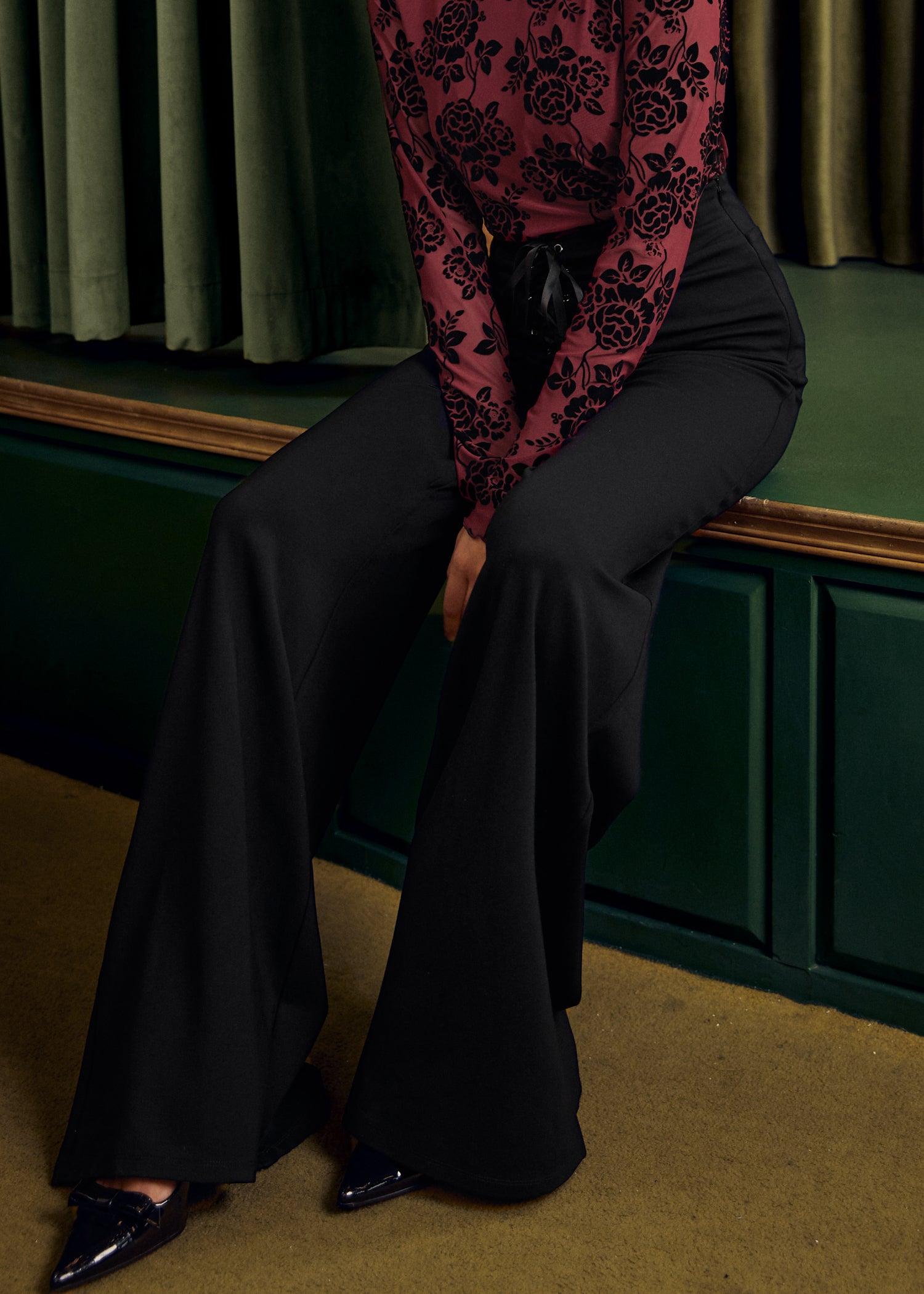 Twirl through the winter season in our Bop 'Til You Drop High Waist Wide Leg Pants from our ModCloth namesake label. In the elegant Eclipse Noir shade, these knit, medium-stretch pants feature a charismatic keyhole button closure, ensuring every movement is graceful. Versatile for both a festive soiree or a suave office setting, they beckon you to make a playful yet poised statement. Machine wash cold, line dry 67% Viscose,29% Polyamide,4% Elastane Length 34" Imported Model is wearing a US size SModel Measurements: Height 68/Bust 34"/Waist 24"/Hips 36"