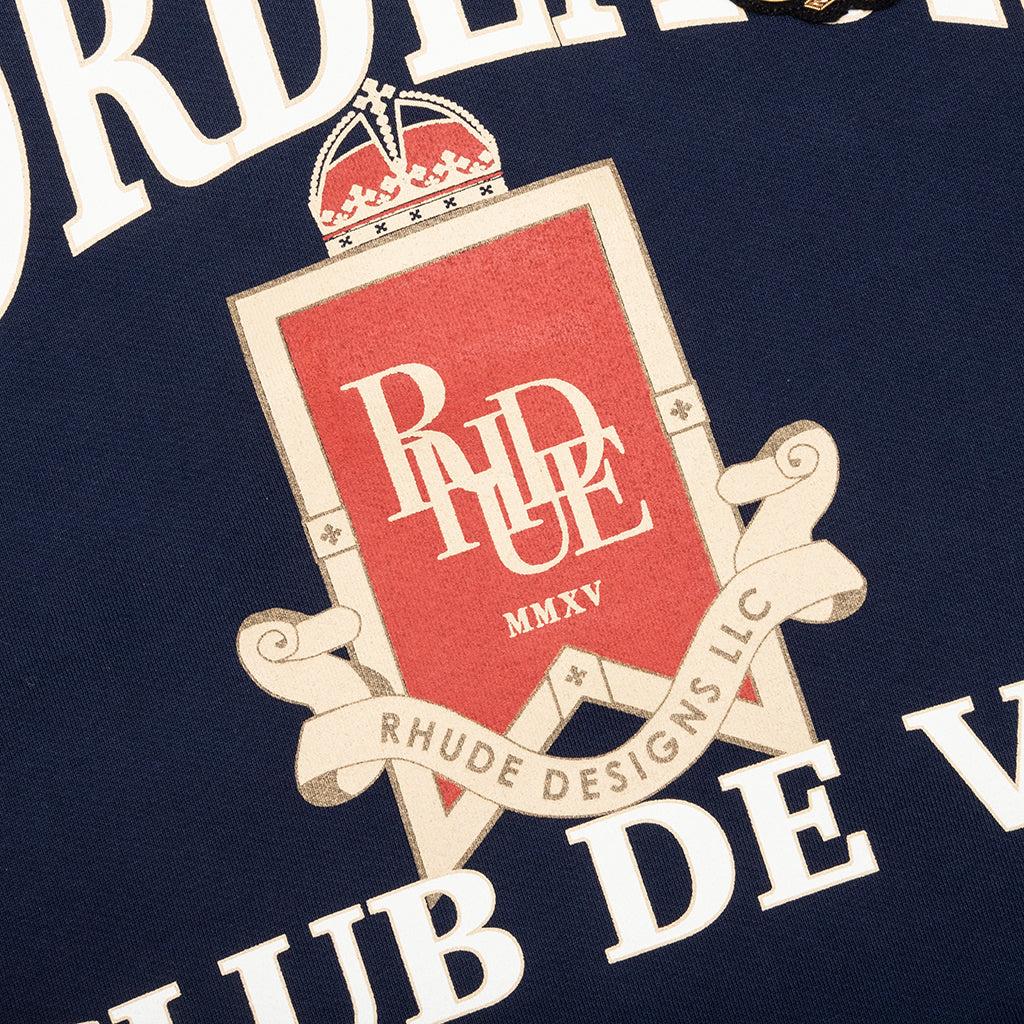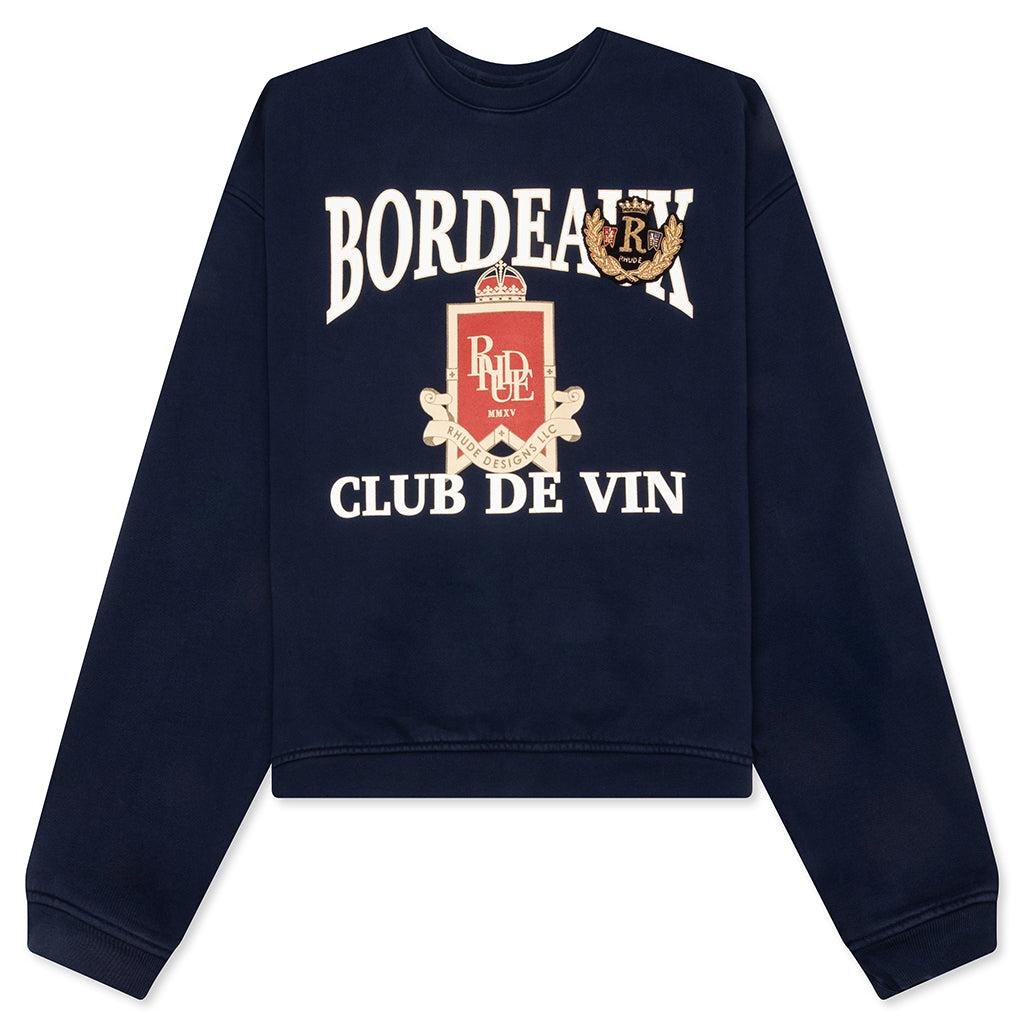 The Bordeaux Crewneck in Navy is made from heavyweight cotton, offering durability and a premium feel. Designed with an oversized fit, it features a screen-printed graphic on the front and an embroidered logo at the chest for added detail. Ribbed collar, cuffs, and hem ensure a comfortable, structured finish. 100% Heavyweight cotton Screen printed graphic on front Embroidered logo at chest Oversized fit Ribbed collar, cuffs, and hem Style No: RHFW24ST040120043 FW24ST040120043