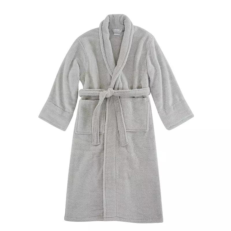 Why wait until your next visit to that luxury resort for a plush bath robe? This 100% cotton, zero twist bath robe from Charisma can make every day seem like a spa day. Zero twist yarns provide a smoother face on the yarn which translates to a softer feel when next to your skin. The lower twist also helps with moisture absorption to keep you comfortable. Description: This robe is unisex, and the weight is perfect for all year wear. Face and back is terry cloth with 100% cotton, zero twist yarns for added comfort. This item is machine washable; however, care should be taken to use appropriate sized machinery so as not to unduly wear the item. Imported
