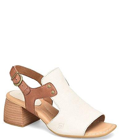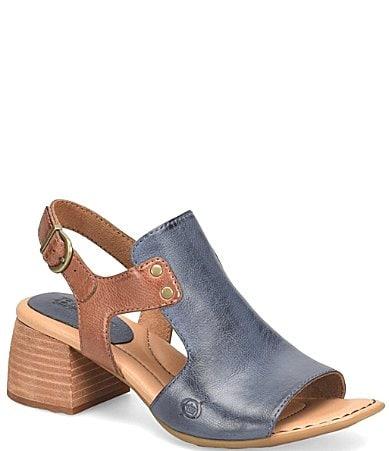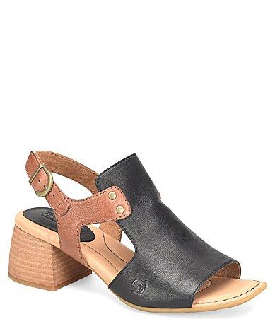 From Born, the Sylvie Leather Block Heel Slingback Sandals feature:Soft hand-finished leather upperOpanka hand crafted constructionAdjustable buckled sling strap strap closureBreathable soft fabric suede liningLeather covered cushioned footbed with extra foam for added comfortHigh-traction flexible lightweight rubber outsoleApprox. 2 inlaid leawood stacked heelImported.