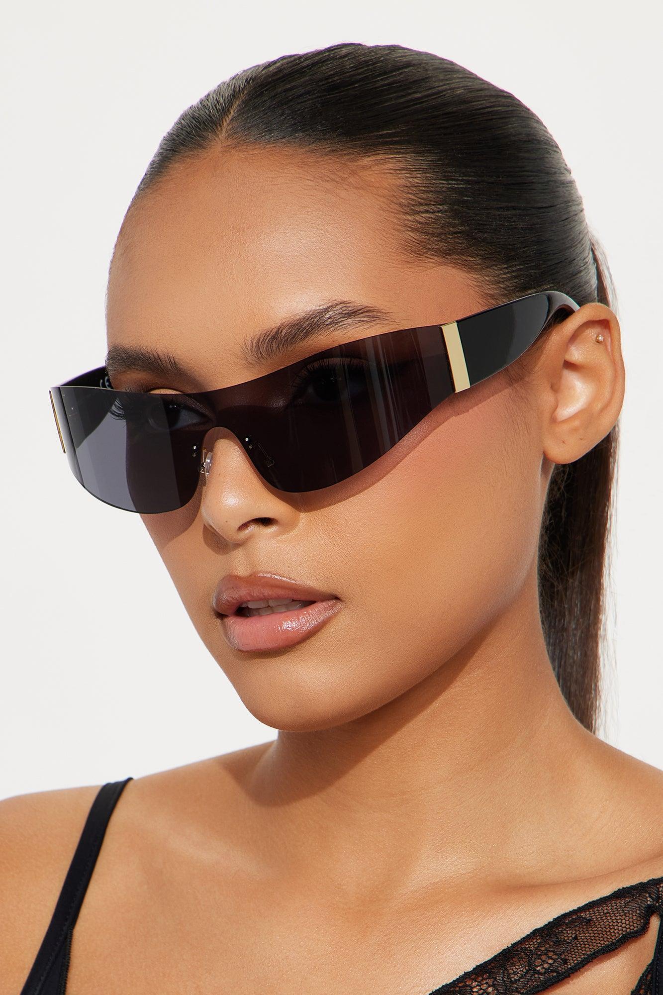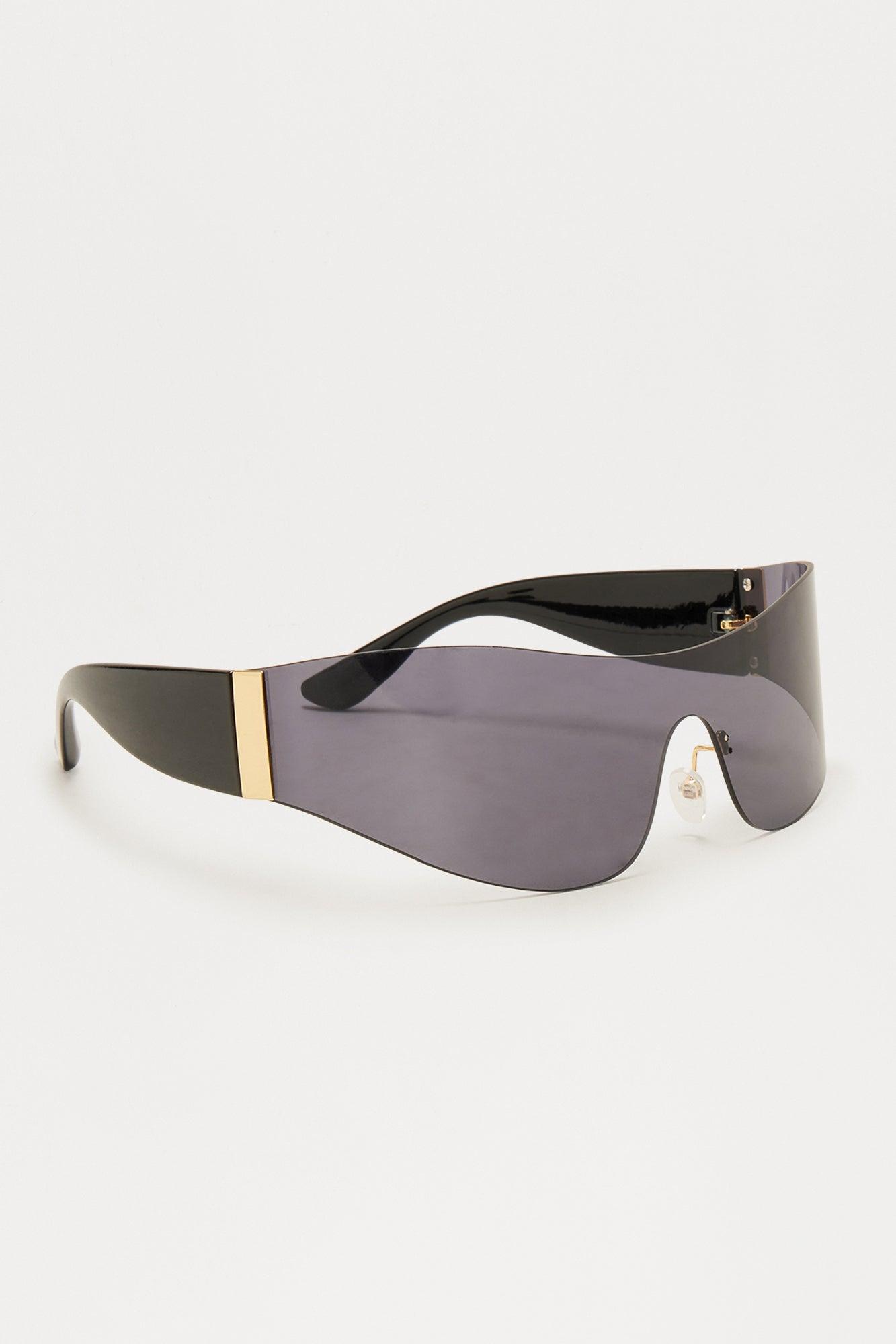 Born To Be A Legend Rimless Shield Sunglasses - Black