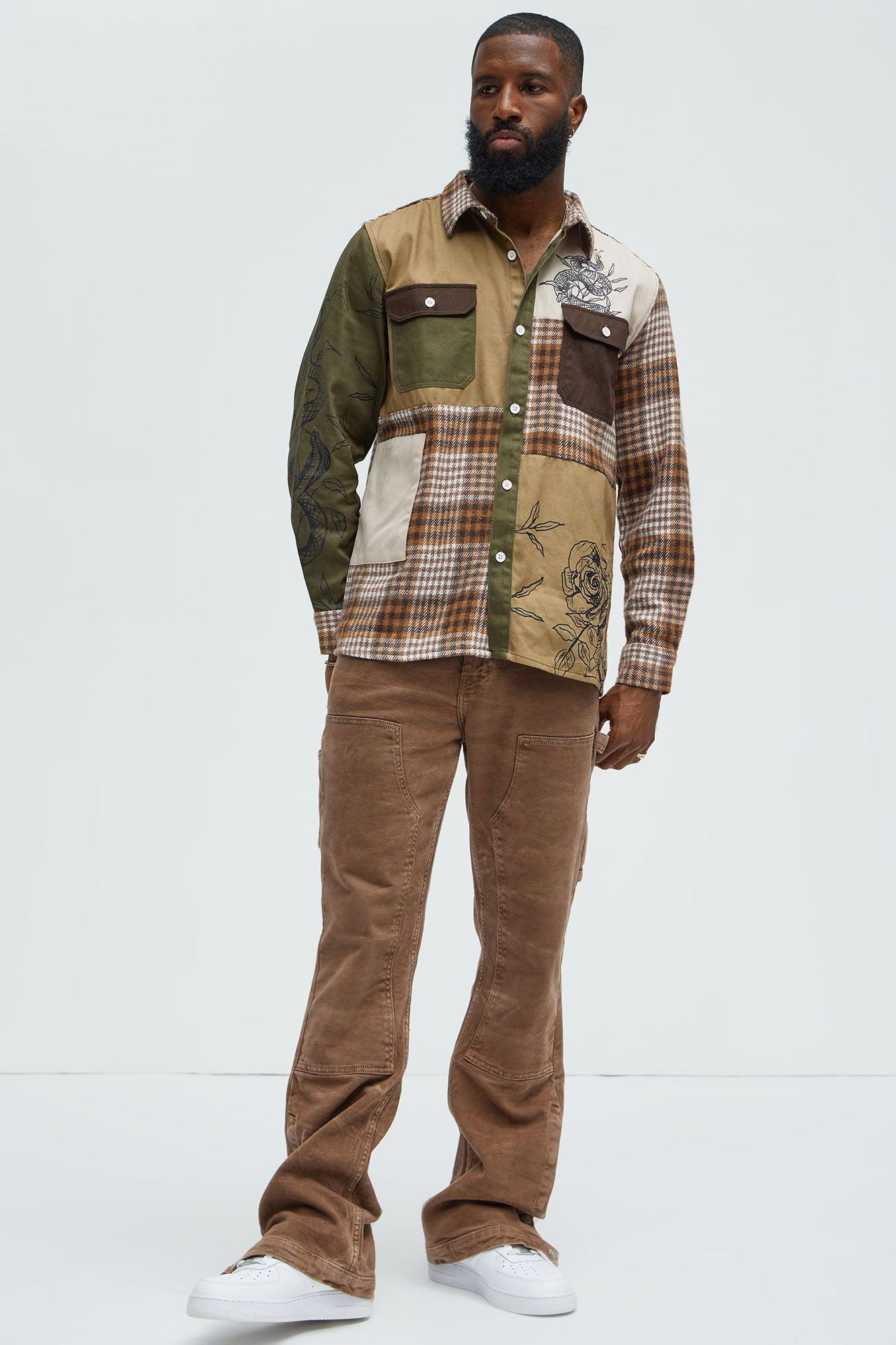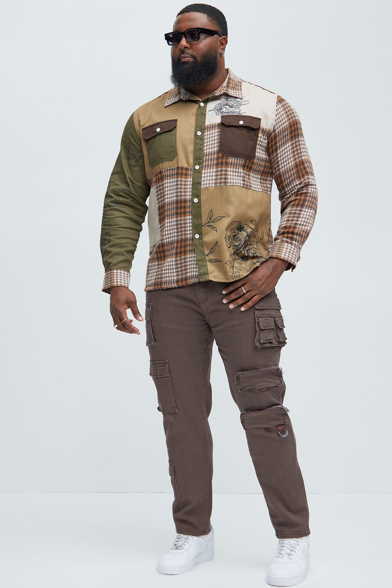 Available In Multi Color. Fold Down Collar Front Button Closure Chest Pocket Long Sleeve Shell 1: 100% Polyester Shell 2: 100% Cotton Disclaimer: Plaid Placement Will Vary. Imported