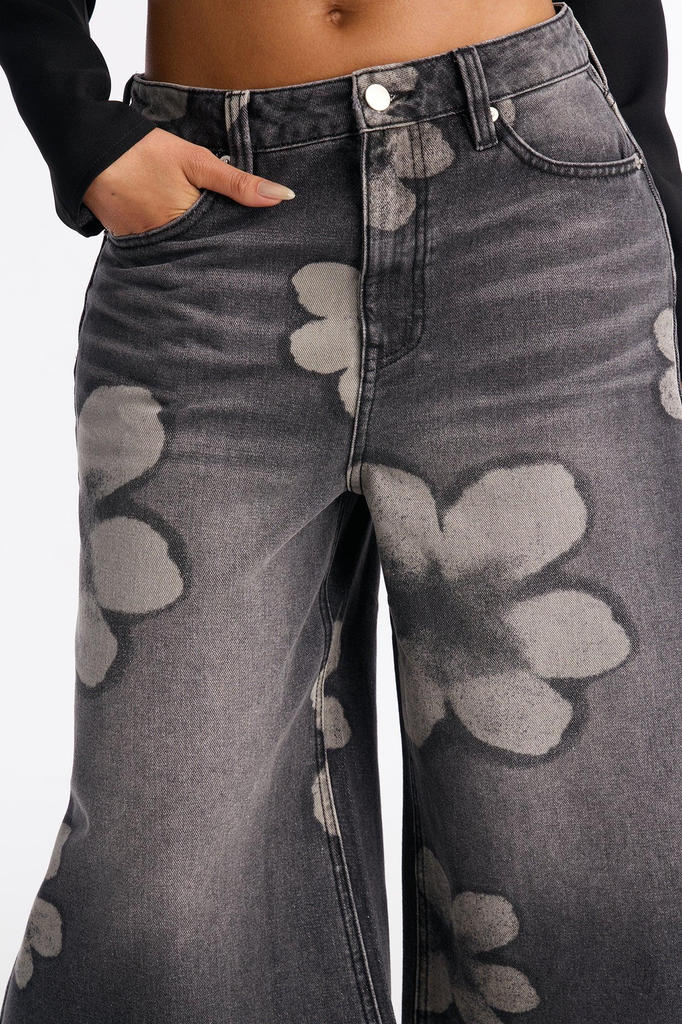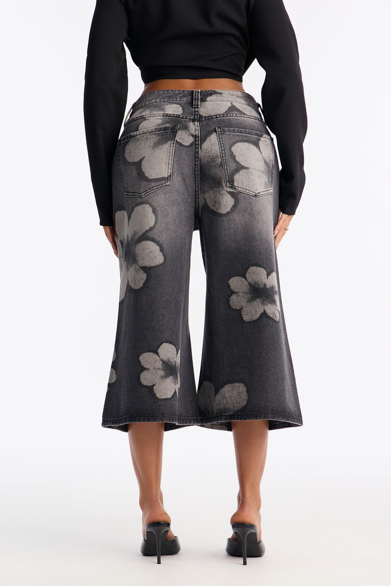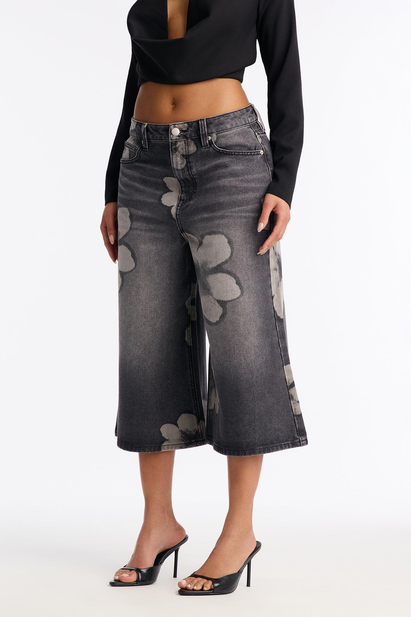 Born To Bloom Wide Leg Culotte Jeans - Black Wash Female