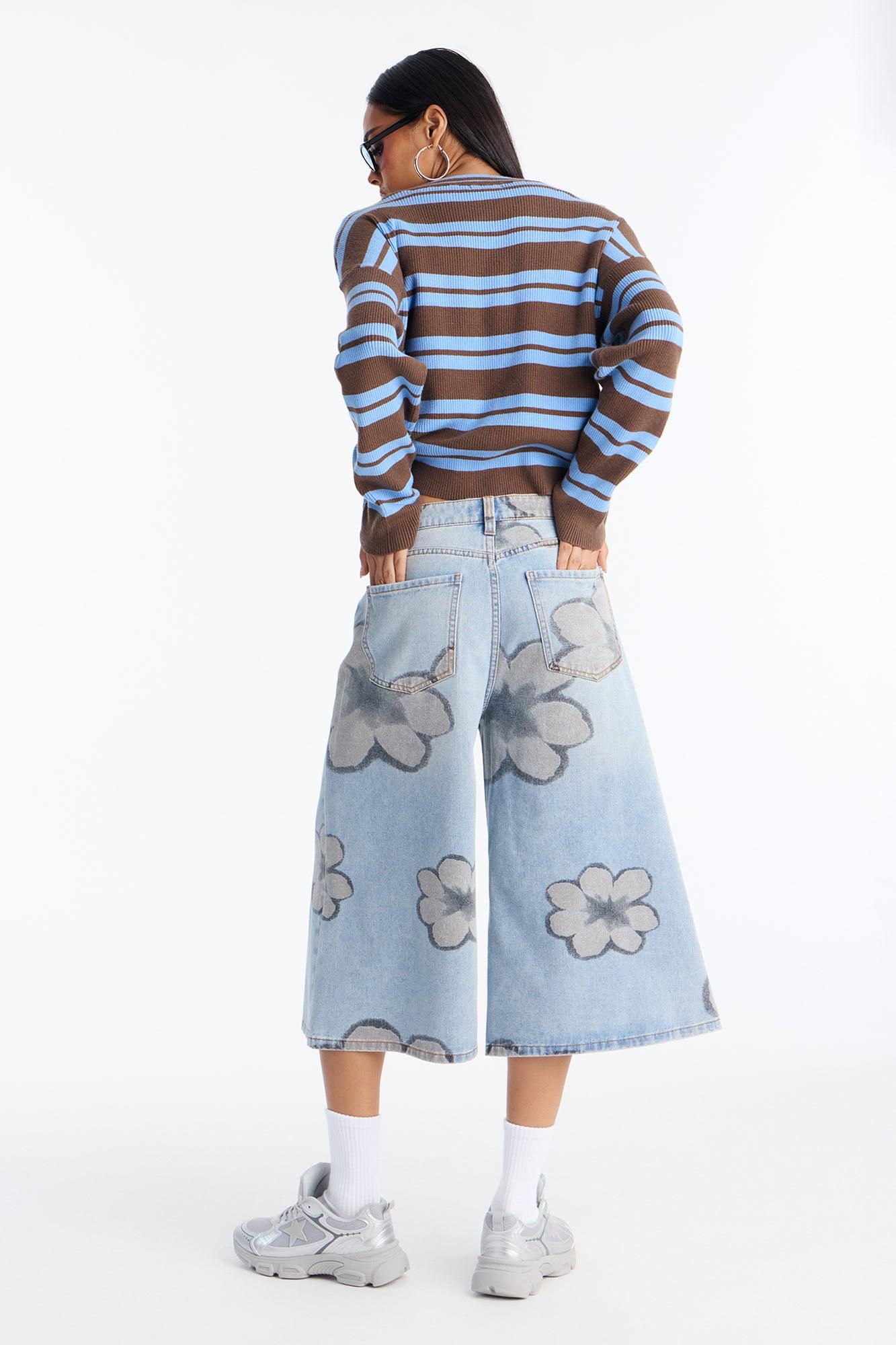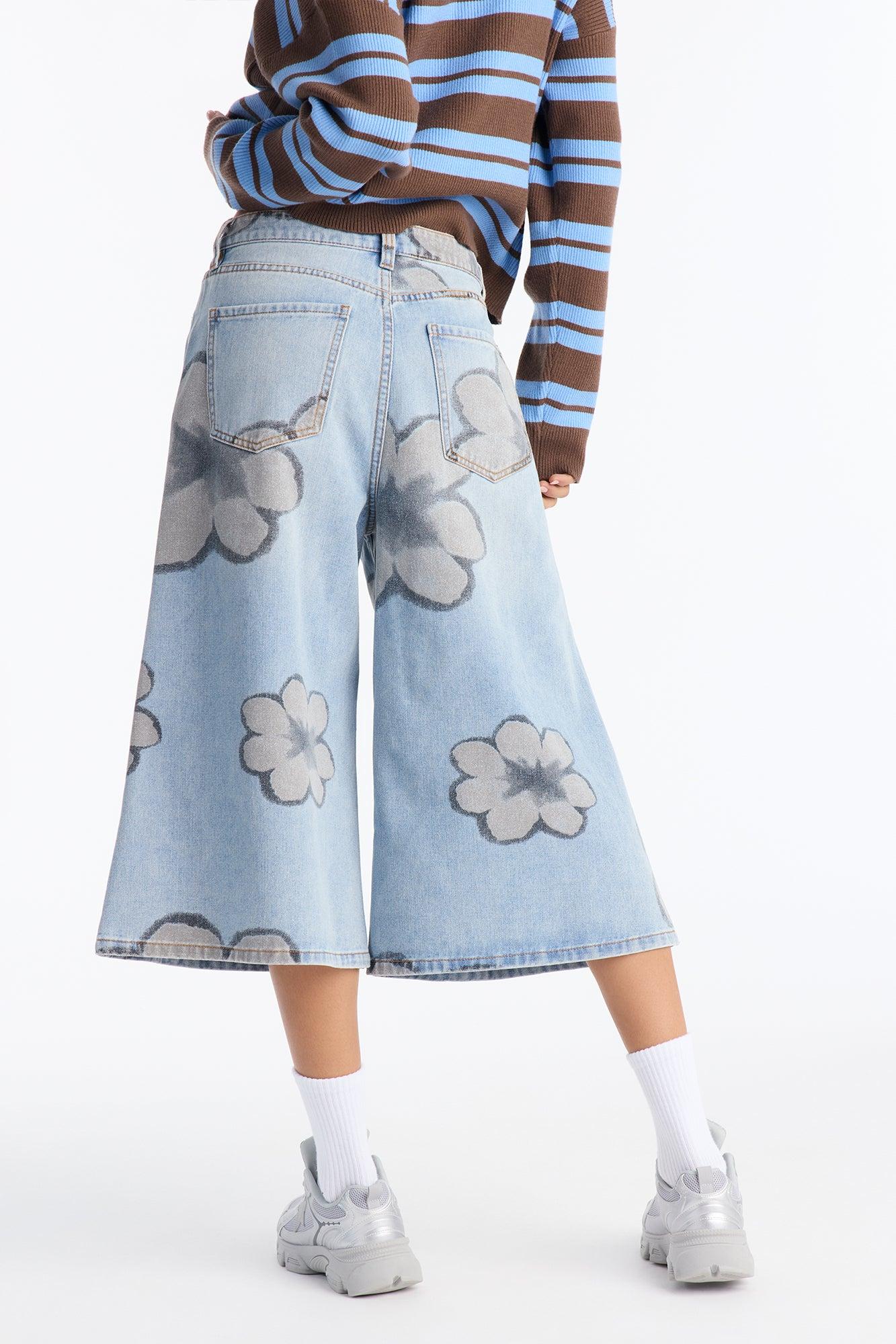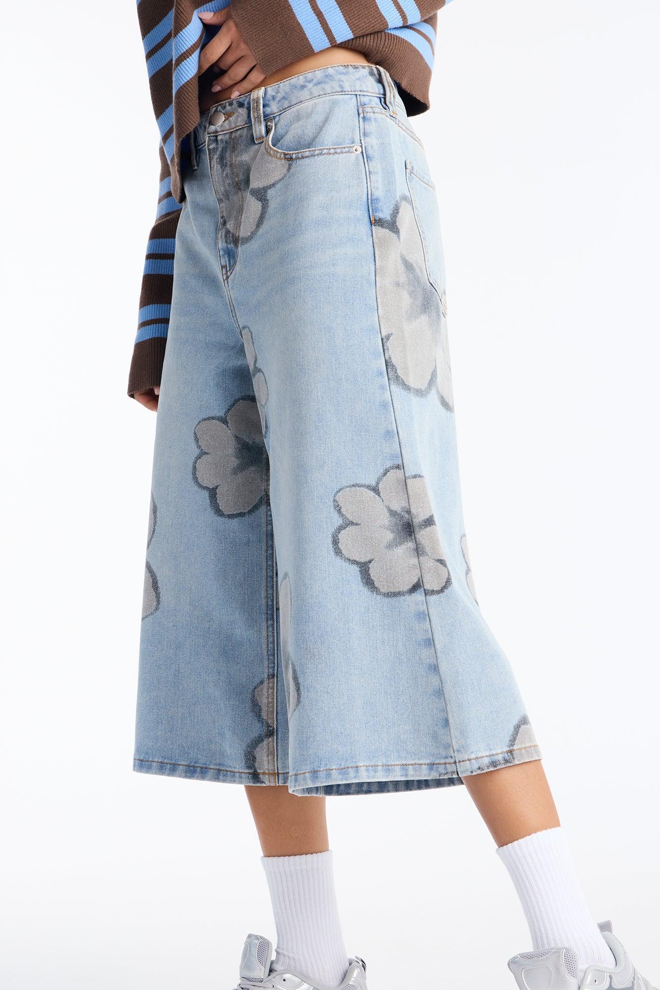 Born To Bloom Wide Leg Culotte Jeans - Light Wash Female