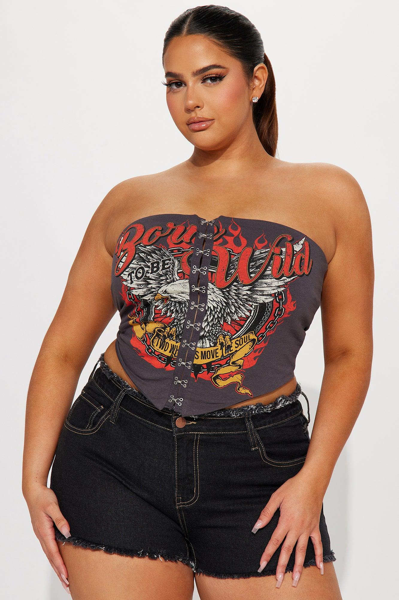 Available In Charcoal. Corset Top Sleeveless Hook And Eye Closure Front Screen Cropped Stretch Disclaimer: Due To The Printing Process A Difference In Saturation May Occur. Each Garment Is Unique. Print Placement Will Vary. 95% Cotton 5% Spandex Imported