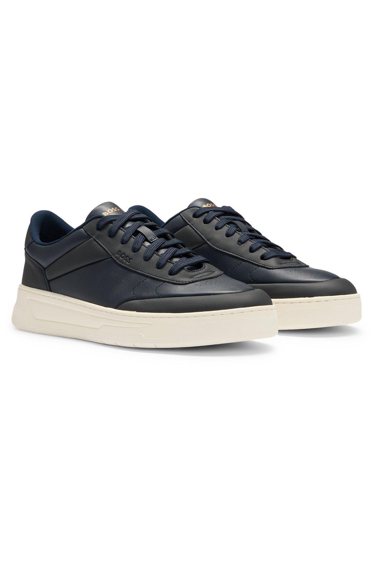 Basketball-style trainers in two-tone leather - Dark Blue Sneakers from BOSS for Men for in the official HUGO BOSS Online Store free shipping