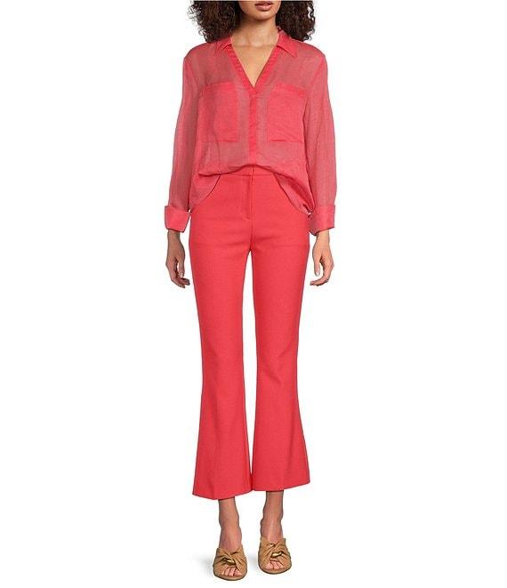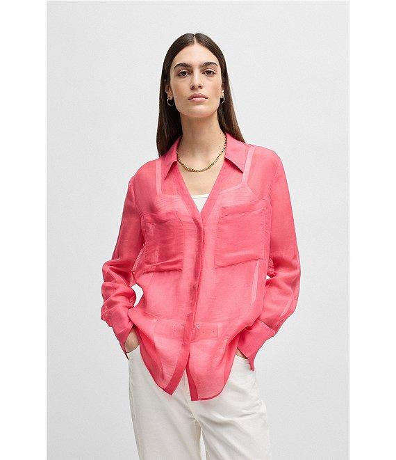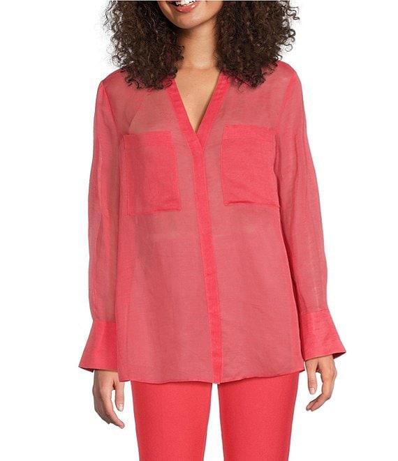 From BOSS by Hugo Boss, this shirt features: Woven fabrication Point collar v-neckline Long sleeves with button cuffs Front patch pockets Straight hem Pullover construction Approx. 26.38" length Viscose/linen Dry clean Imported.