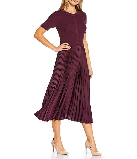 BOSS by Hugo Boss Fadridi Knit Scoop Neck Short Sleeve Pleated Midi Dress