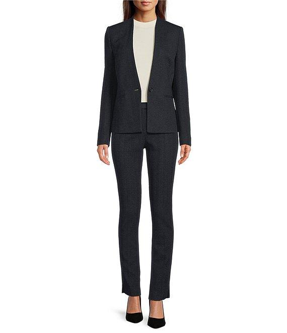 From BOSS by Hugo Boss, this blazer features: 4-way stretch woven fabrication V-neckline Long sleeves Welt pockets Straight hem One-button front closure Approx. 24.40" length Acrylic/wool/polyester; lining: viscose/polyester Dry clean Imported.