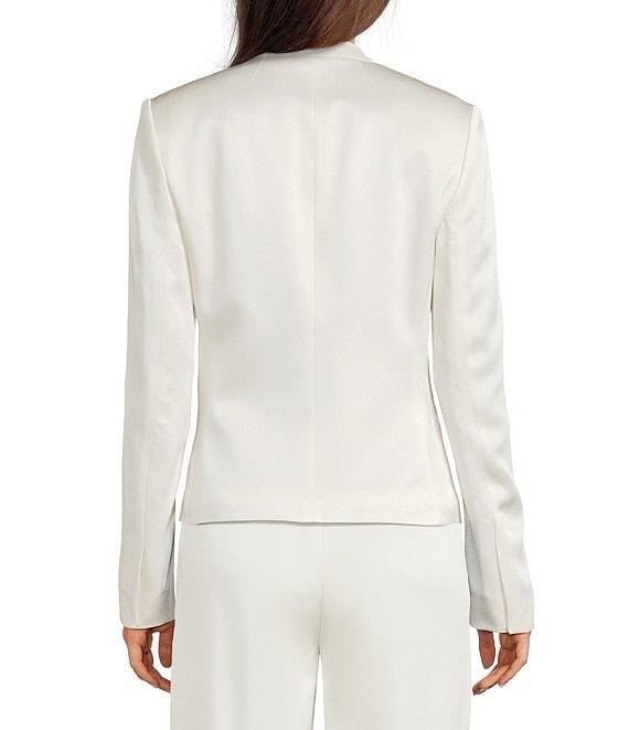 From BOSS By Hugo Boss, this jacket features: Woven sable shiny fabrication Shawl collar neckline Long sleeves Front welt pockets Straight hem Hook front closure Approx. 22.8" length Acetate/viscose; lining: polyester/viscose Dry clean Imported.