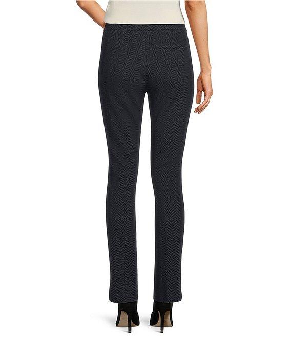 From BOSS by Hugo Boss, these pants feature: Herringbone jersey fabrication Flat front silhouette Slim leg French pockets Hook front closure Approx. 36.7" inseam Acrylic/wool/polyester Dry clean Imported.